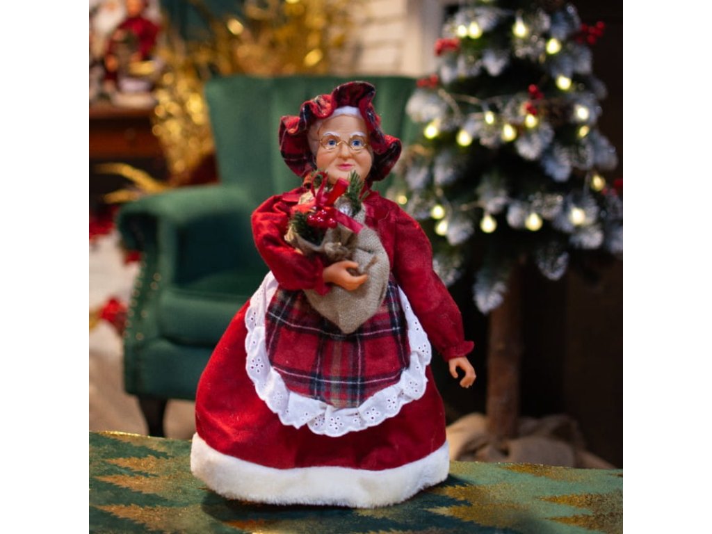 Ponúkame figúrku Babky Mikulášky so zľavou z dôvodu nekompletného odevu. Figúrke chýbajú okuliare a predná károvaná zásterka na červenom kabátiku, čo predstavuje zanedbateľnú vadu tejto dekorácie.