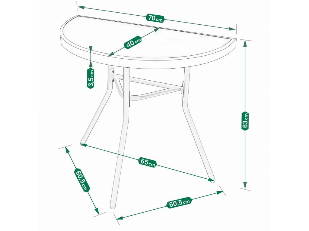 Hľadáte praktický a štýlový nábytok na svoj malý balkón? Tento kompaktný set, ktorý obsahuje polkruhový stôl a dve skladacie stoličky, je pre vás tou pravou voľbou. Vďaka premyslenému dizajnu a možnosti jednoduchého skladania nábytku maximálne využijete aj obmedzený priestor bez toho, aby ste sa museli vzdať pohodlia.