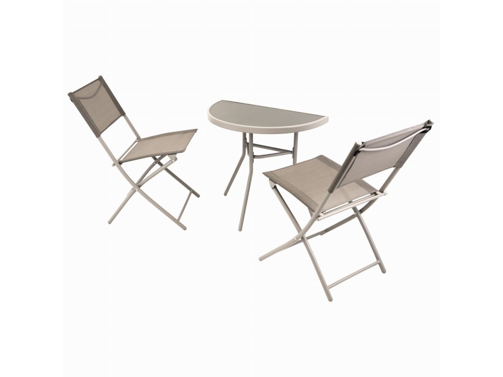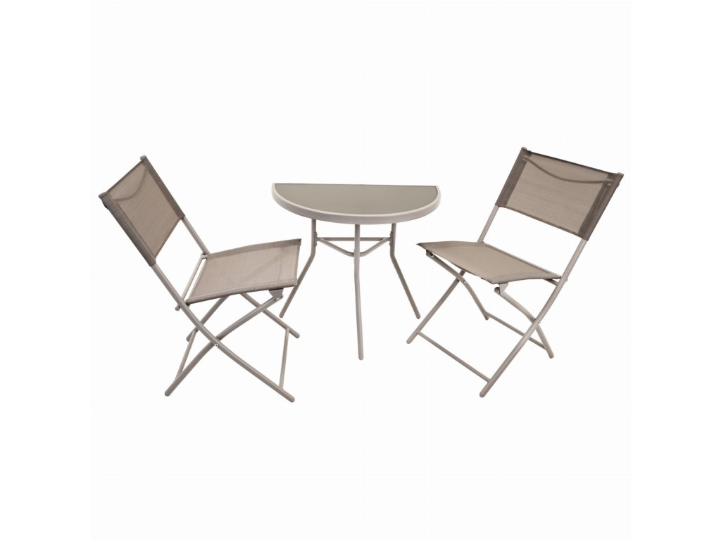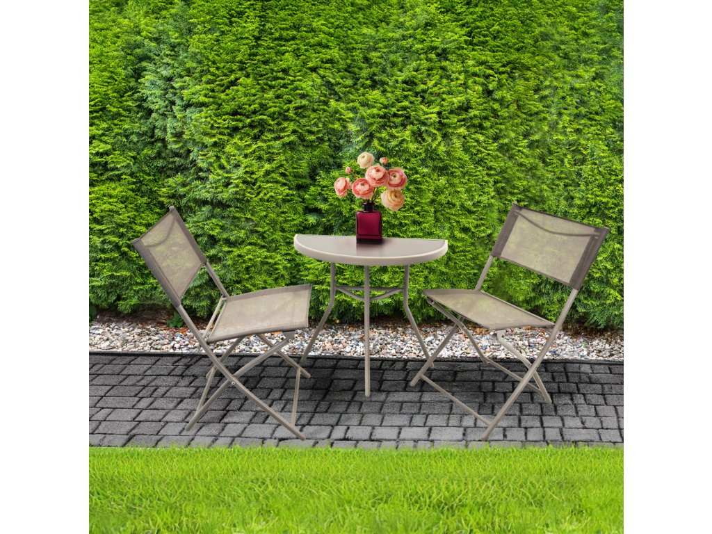 Balkónový skladací set na malý balkón 2x stolička a stôl - béžový