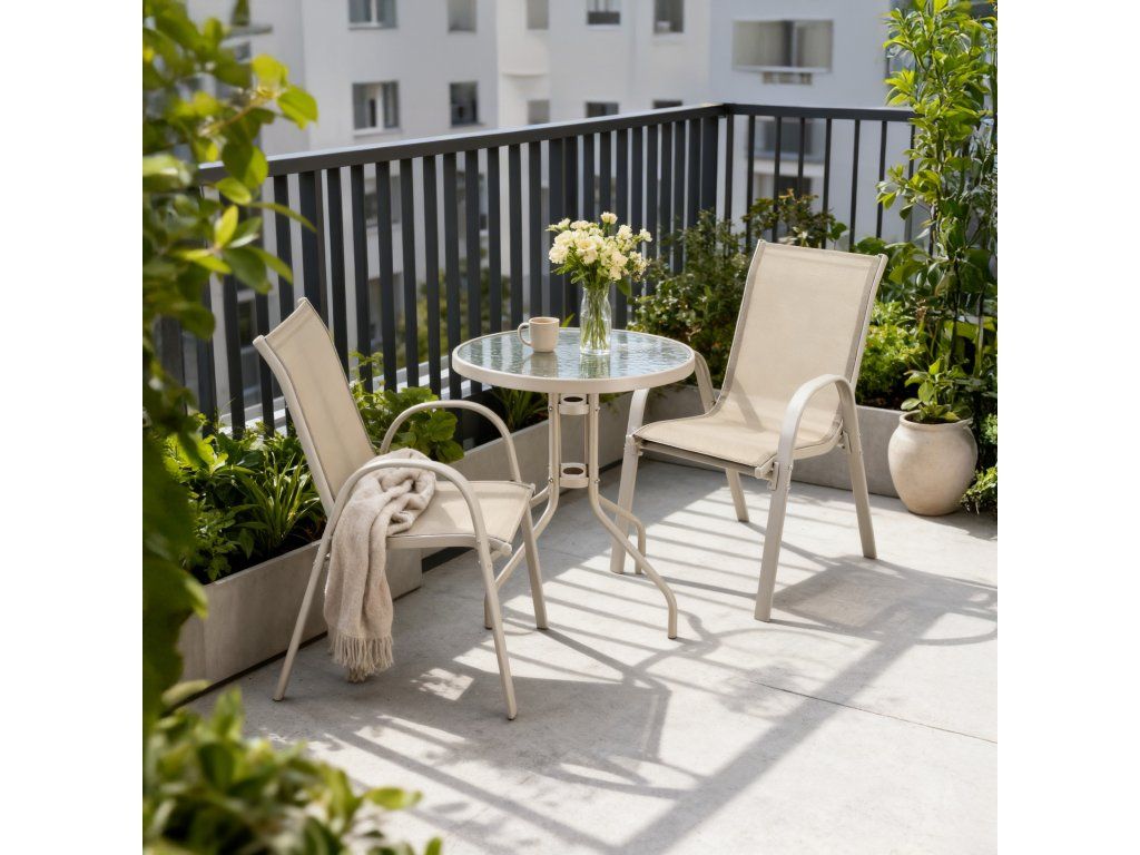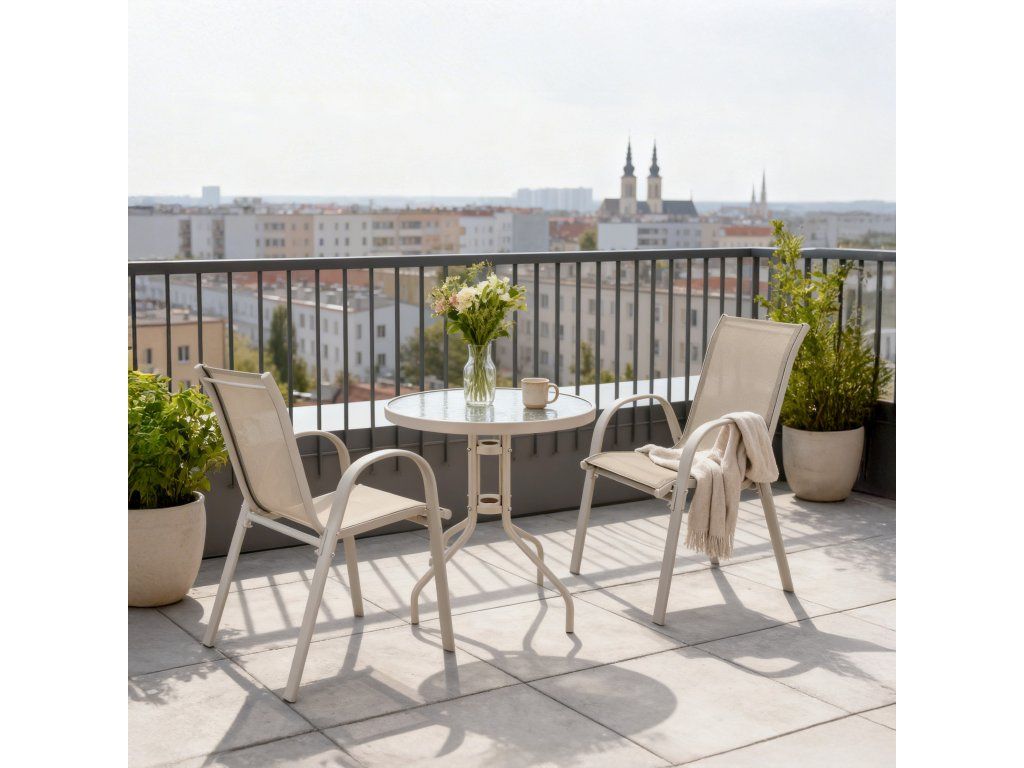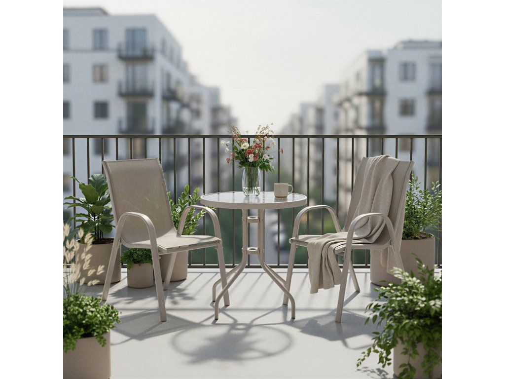 Balkónový záhradný set – 2 stoličky a stolík - béžový