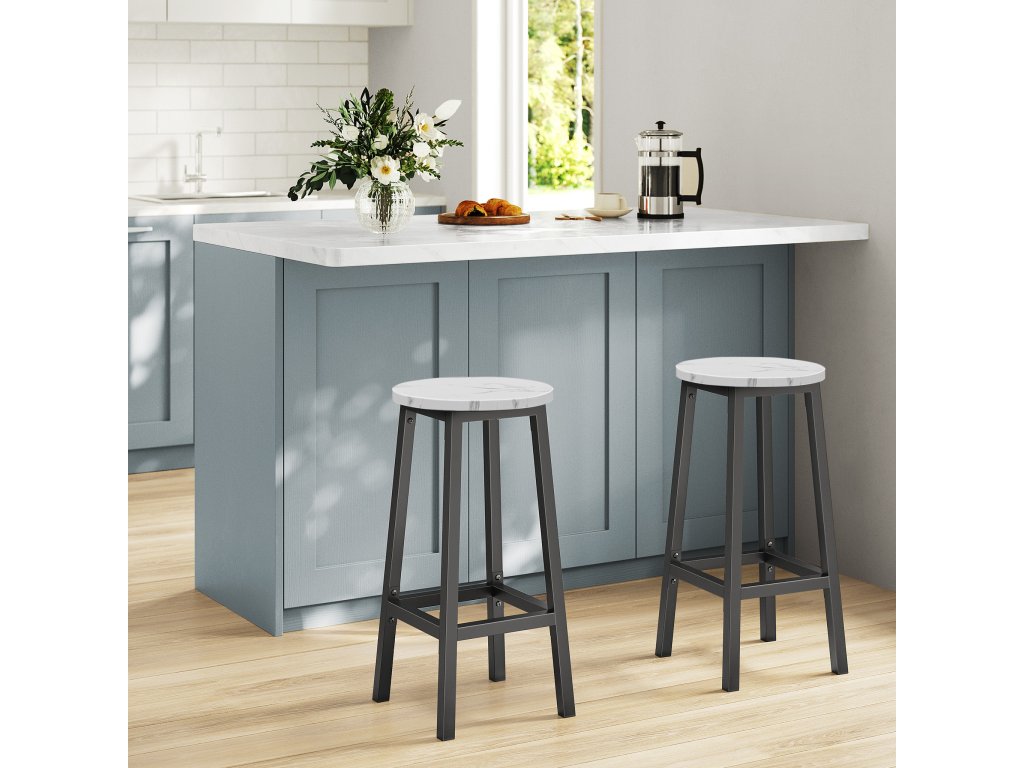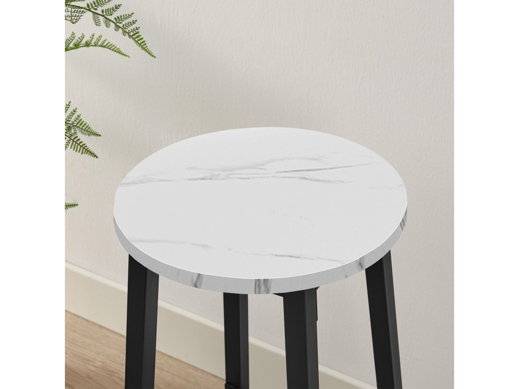 Moderná barová stolička v kombinácii imitácie bieleho mramoru a čiernej kovovej konštrukcie prinesie do vášho interiéru luxusný a elegantný vzhľad. Kontrast svetlého sedadla s tmavými nohami pôsobí štýlovo a nadčasovo, vďaka čomu sa hodí do moderných kuchýň aj industriálne ladených priestorov.