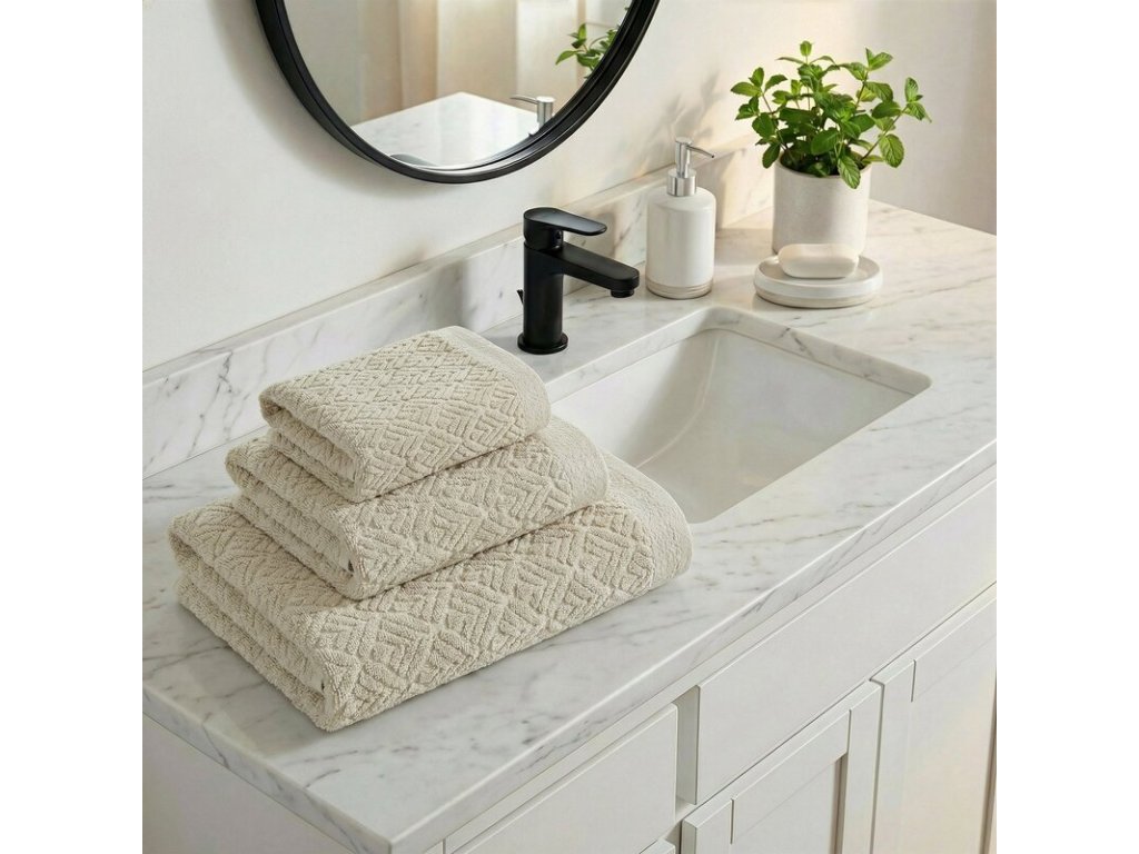 Reliéfny, štruktúrovaný vzor dodáva uteráku štýlový vzhľad a zároveň pomáha udržať jeho tvar aj po opakovanom praní.