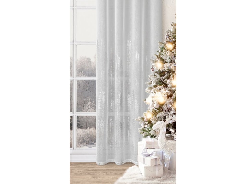 Biela Vianočná záclona s lesklou striebornou potlačou ELSA 140x250cm