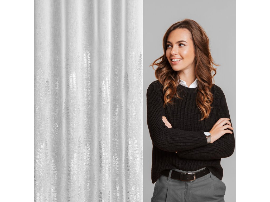 Doplňte svoj interiér jemnosťou a eleganciou s hotovou bielou záclonou s lesklou striebornou potlačou. Vďaka univerzálnym rozmerom 140 × 250 cm sa hodí do väčšiny okien a okamžite zútulní váš domov.