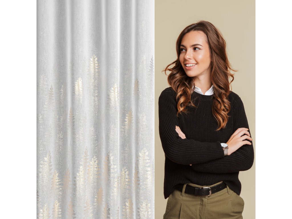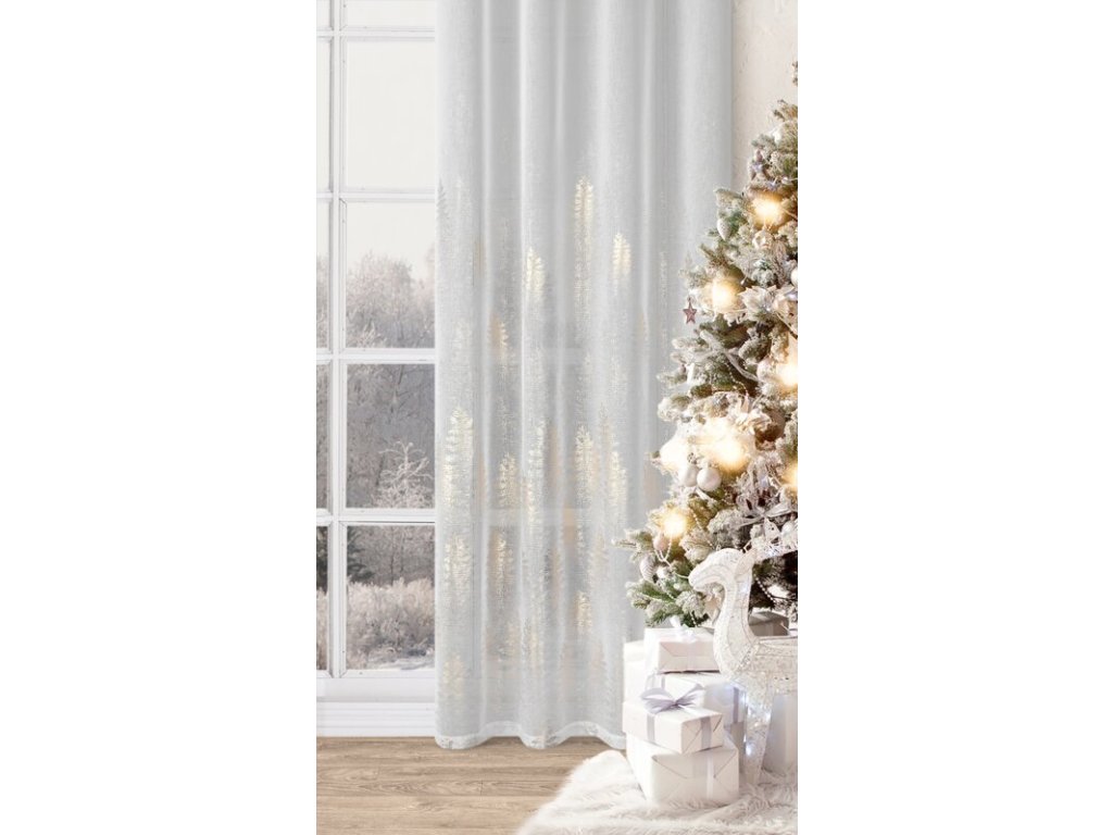 Biela Vianočná záclona s lesklou zlatou potlačou ELSA 140x250cm