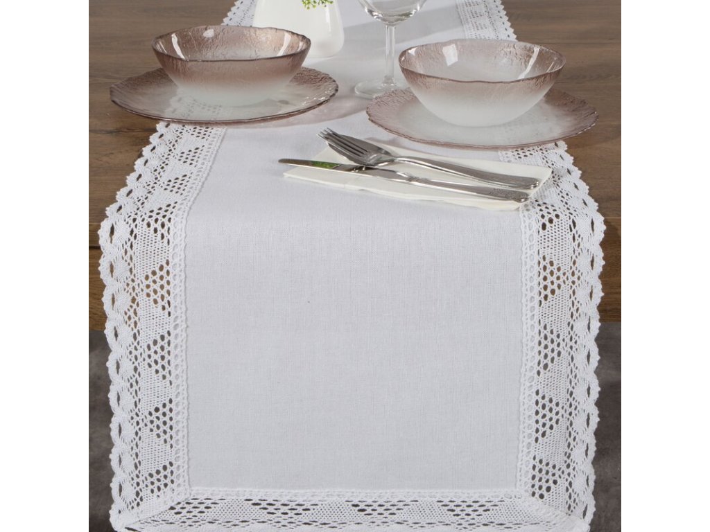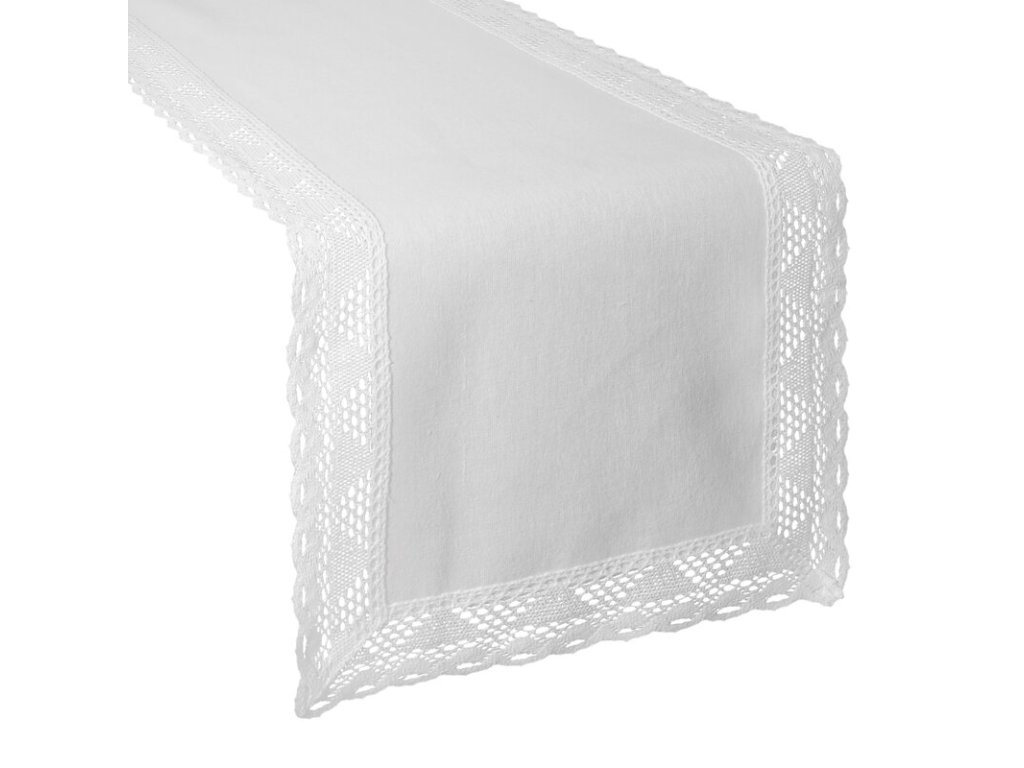 Dodajte svojmu stolovaniu šarm a eleganciu s týmto bielym behúňom zo zmesi bavlny a polyesteru.