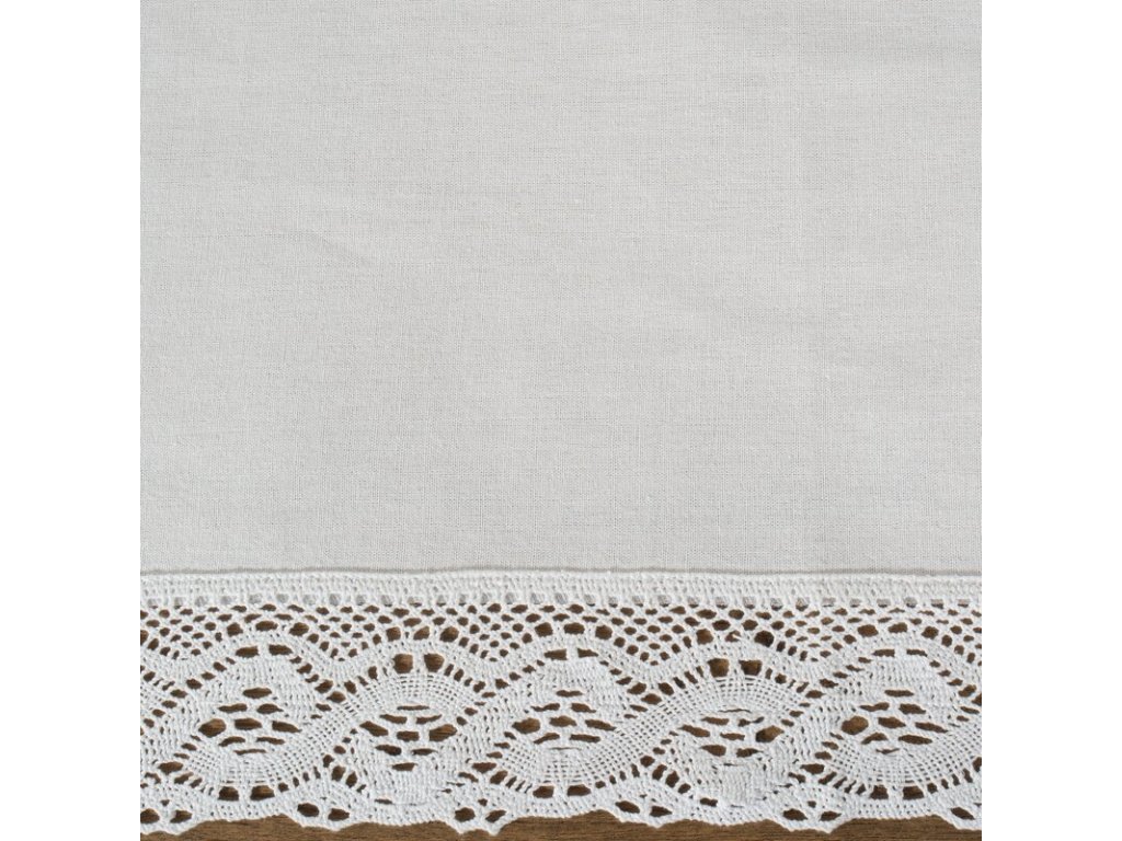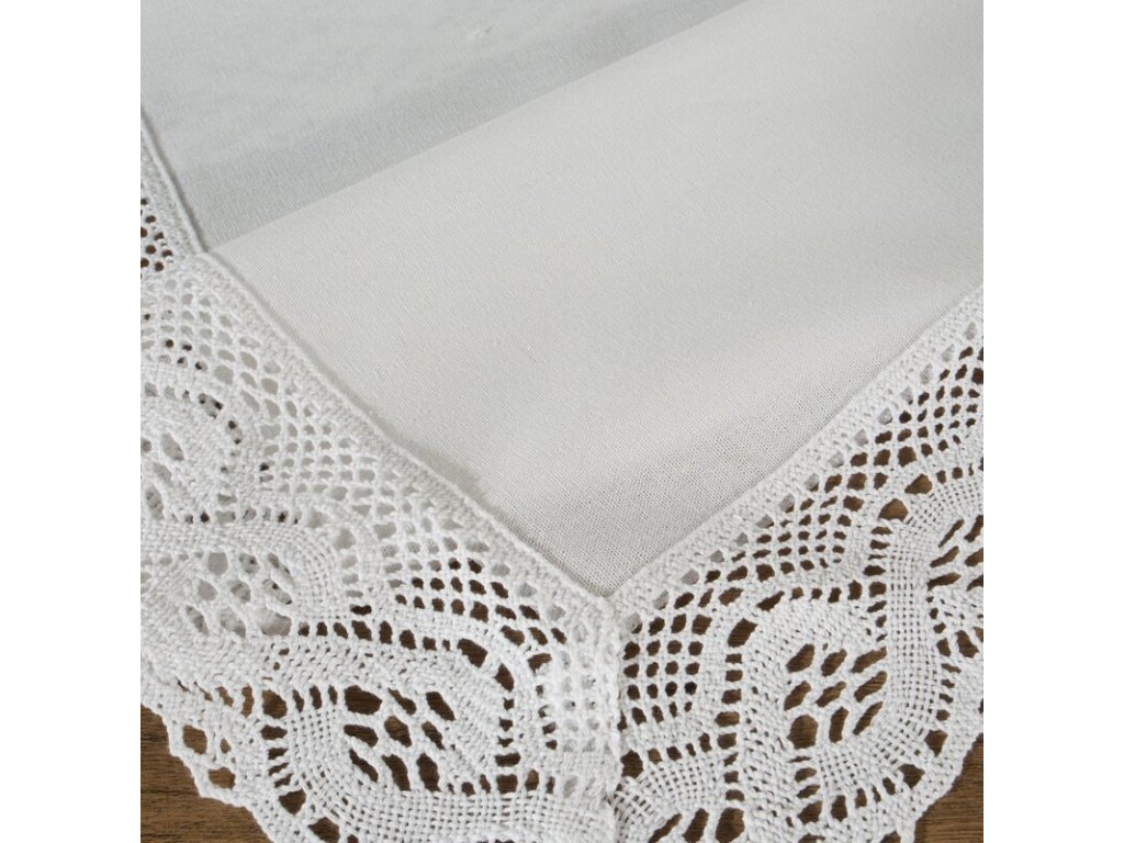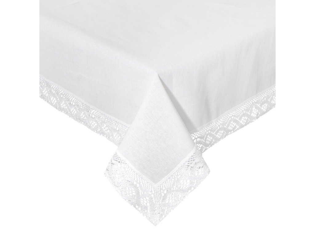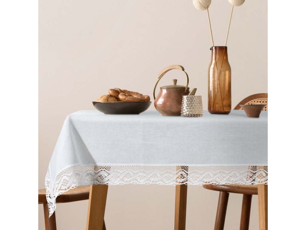 Ozdobné čipkované lemovanie dodáva obrusu romantický nádych a mení každé stolovanie na výnimočný zážitok. Vďaka univerzálnej snehobielej farbe ho jednoducho zladíte s rôznymi štýlmi interiéru – od klasického cez rustikálny až po boho.
