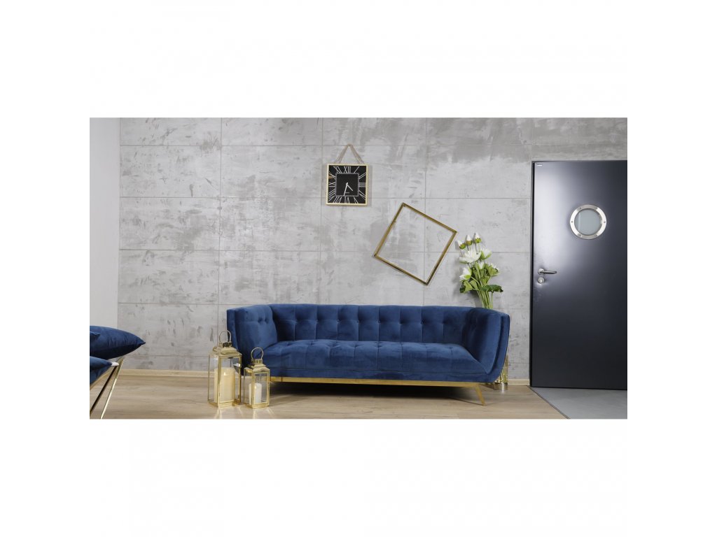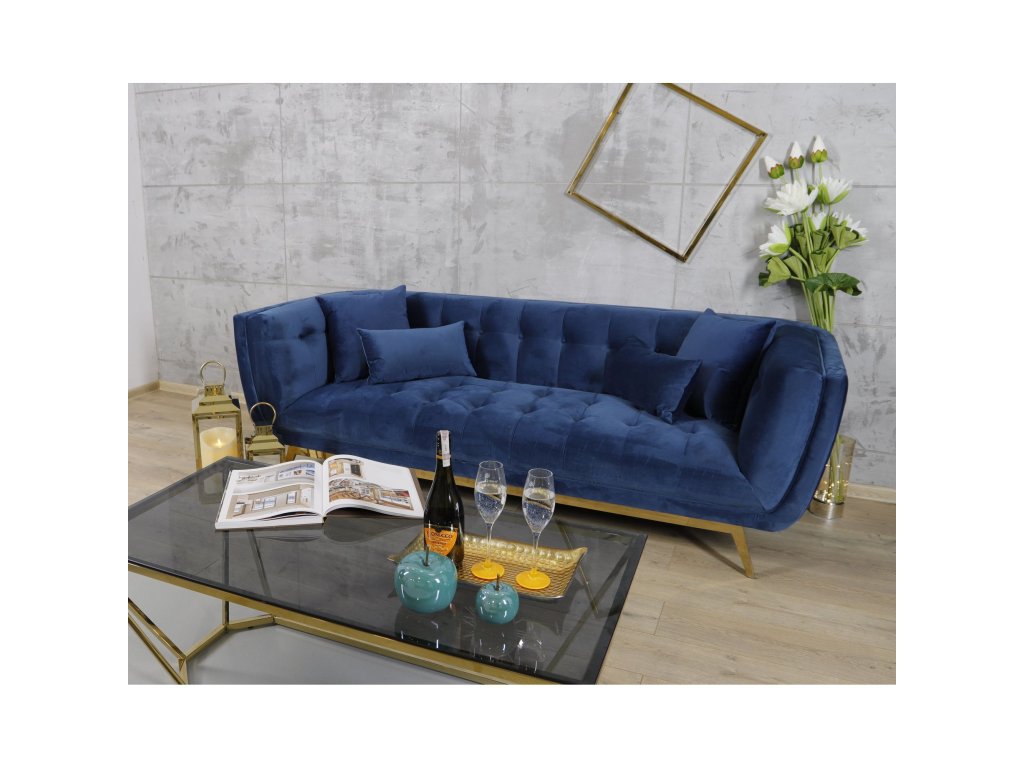 Čalúnená pohovka na zlatých chromovaných nožičkách ECLESIO - modrá
