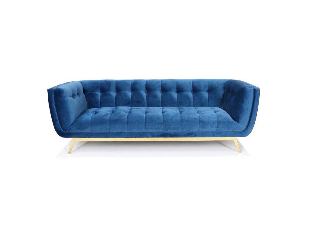 Pohovka je vyrobená z modrého prešívaného velúru, ktorý je veľmi jemný a príjemný na dotyk.