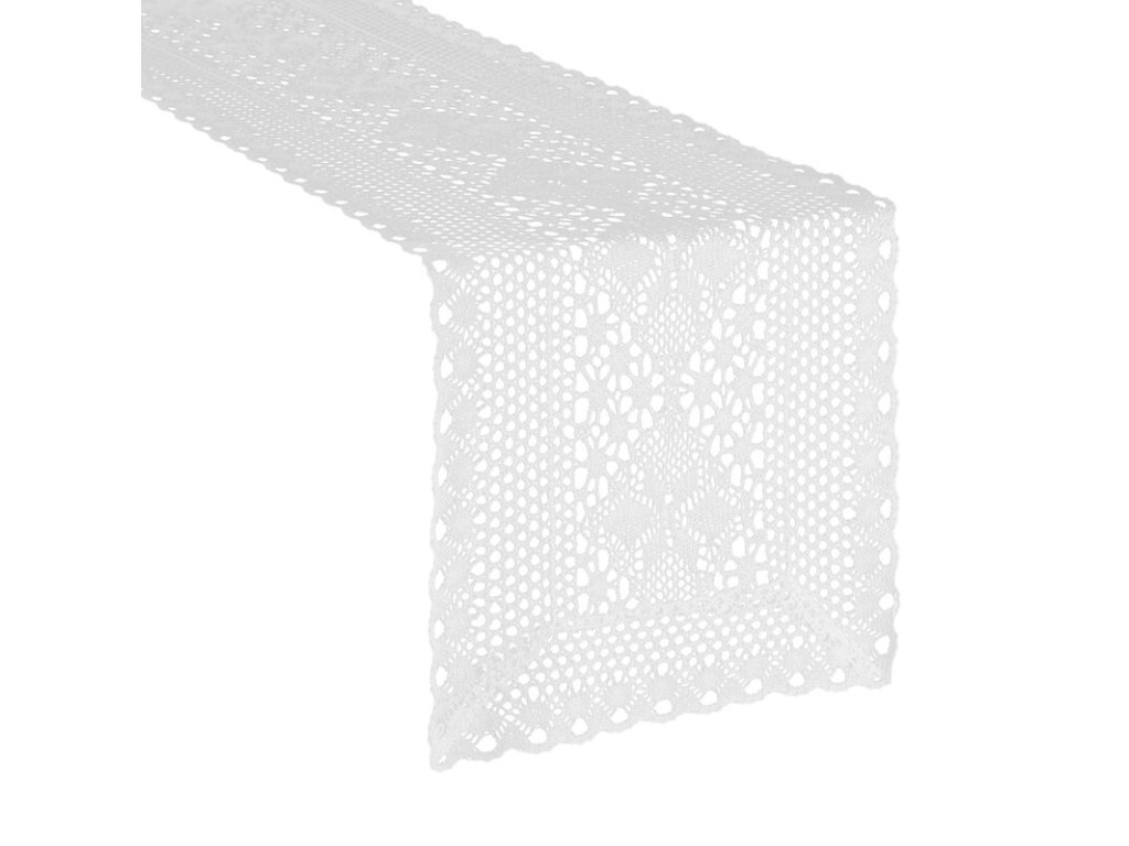 Čipkovaná štóla na stôl MEGGY - biela 32x180cm