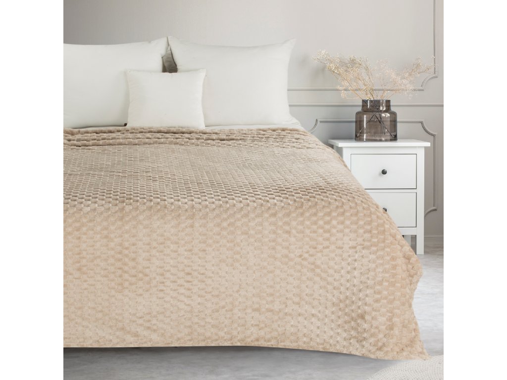 Jemný geometrický vzor prikrývky zvýrazní moderný charakter interiéru a dodá útulnú atmosféru.