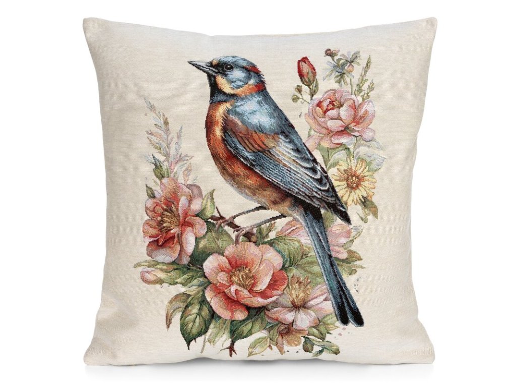 Dekoračná gobelínová obliečka na vankúš s vtáčikom 45 x 45 cm