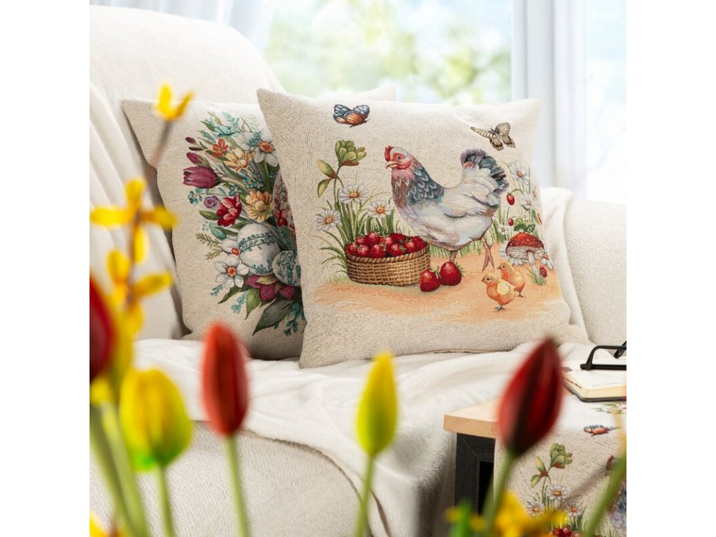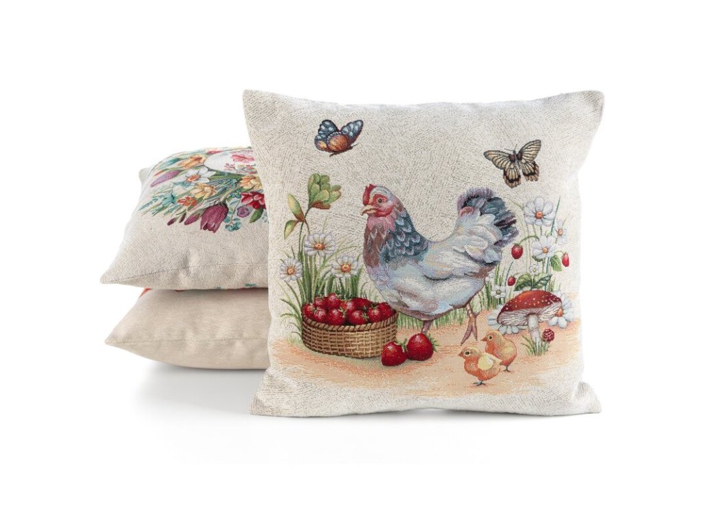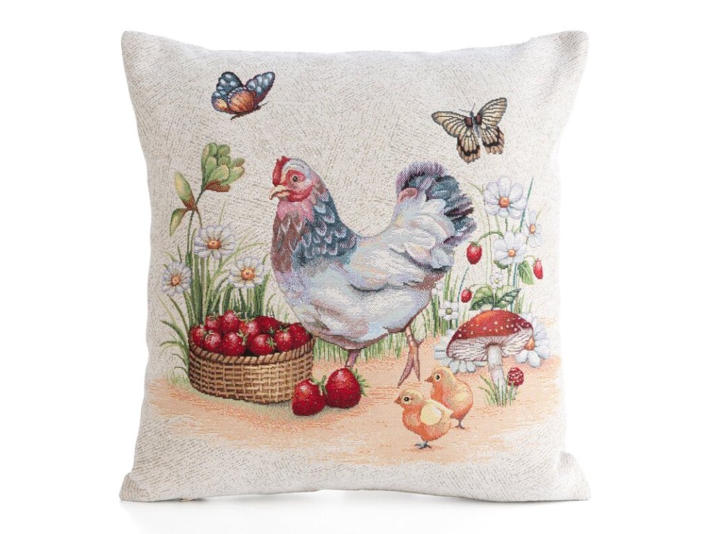 Dekoračná gobelínová obliečka na vankúš so sliepočkou 45 x 45 cm