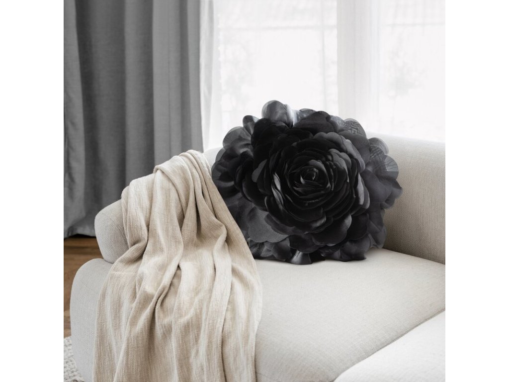 Dekoračná obliečka na vankúš 3D FLORES 6 v čiernej farbe