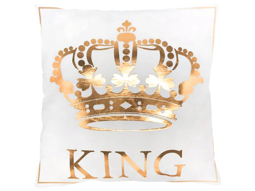 Biela základná farba s lesklým nápisom KING v šampanskej farbe a kráľovskou korunou pôsobí štýlovo, mužsky a zároveň decentne.