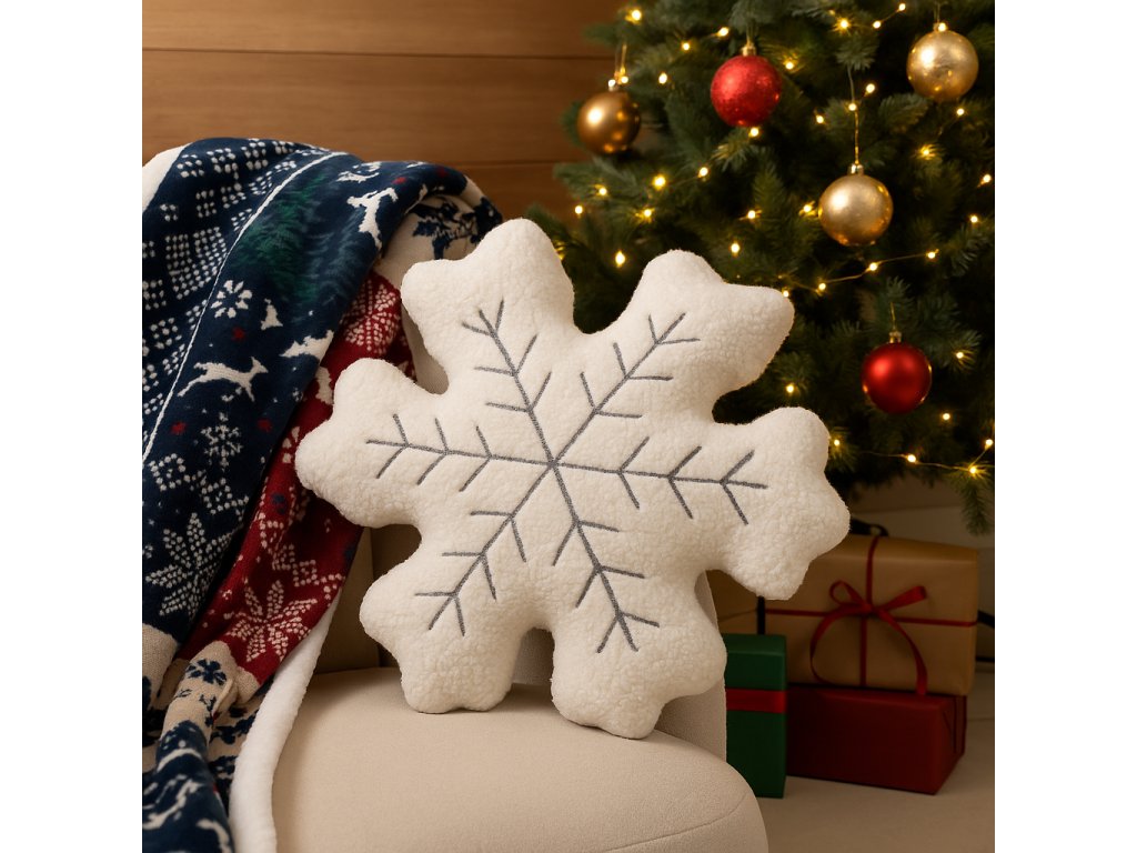 Vneste do svojho domova čaro zimy s týmto originálnym dekoračným vankúšom v tvare snehovej vločky.
