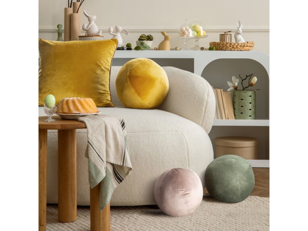 Dekoračná guľa GAJA môže byť použitá ako dekorácia na posteľ, pohovku alebo kreslo, čím dodáva interiéru eleganciu a útulný charakter.