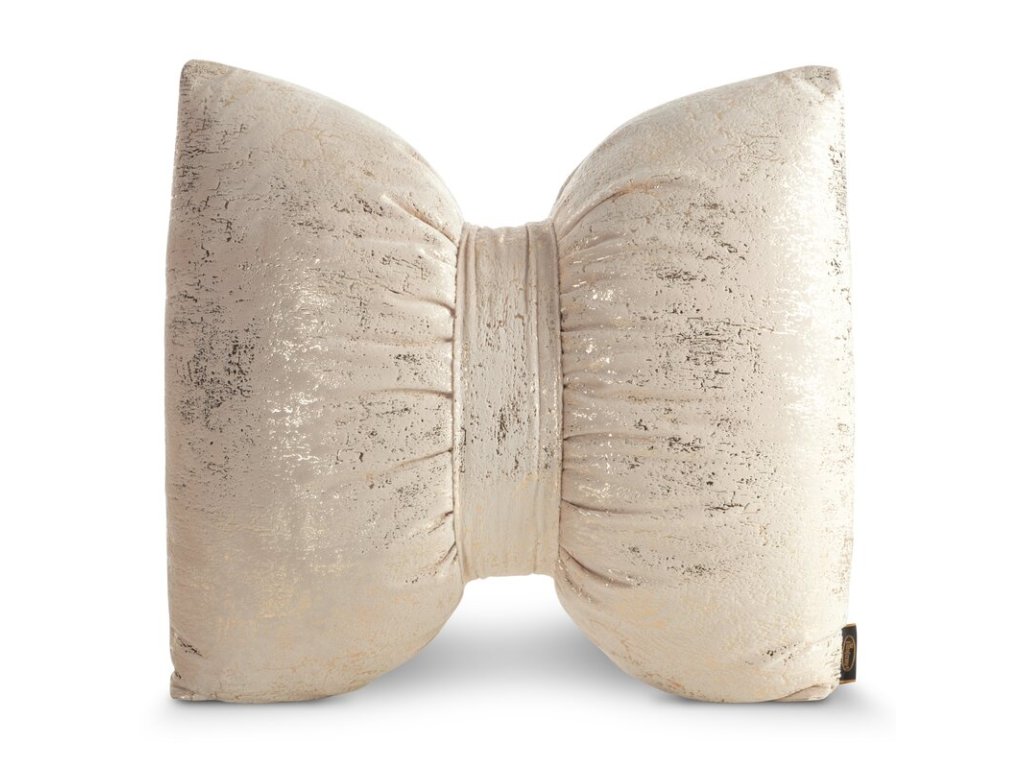 Dekoračný zamatový vankúš v tvare mašle - béžový s lesklým efektom