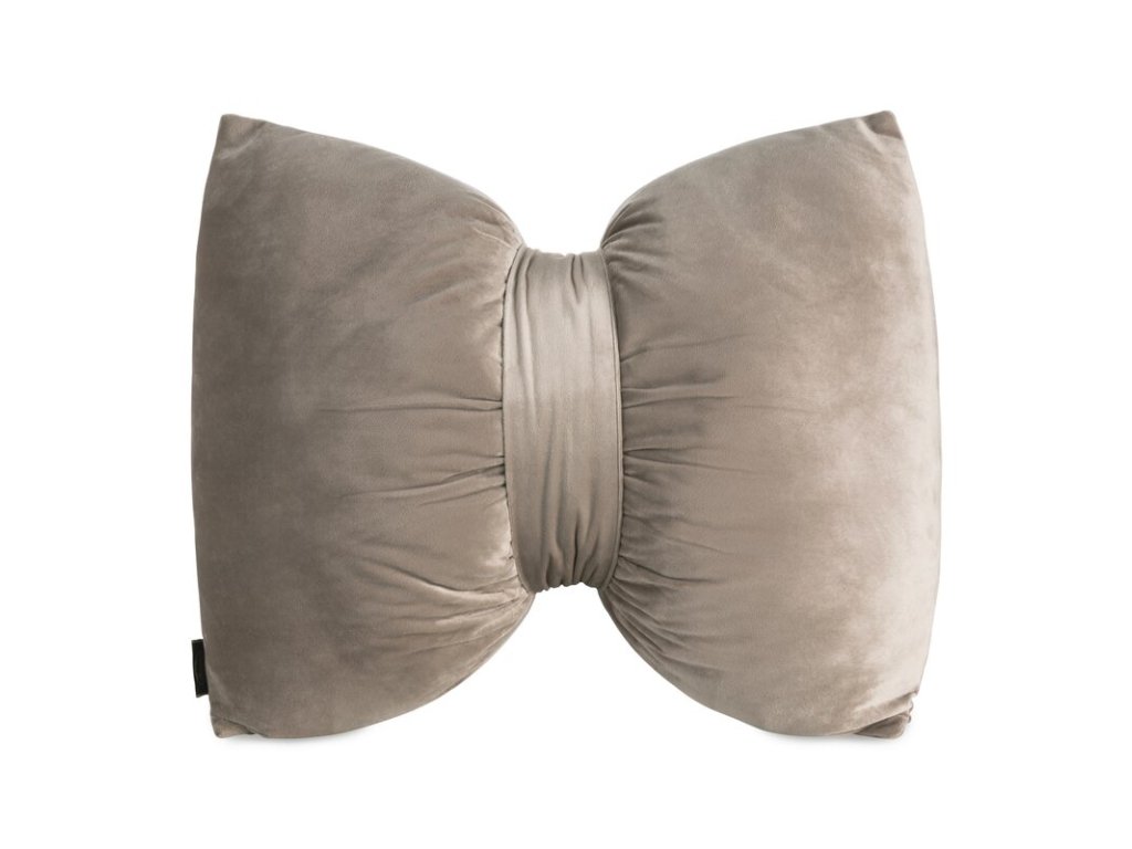 Dekoračný zamatový vankúš v tvare mašle - béžový