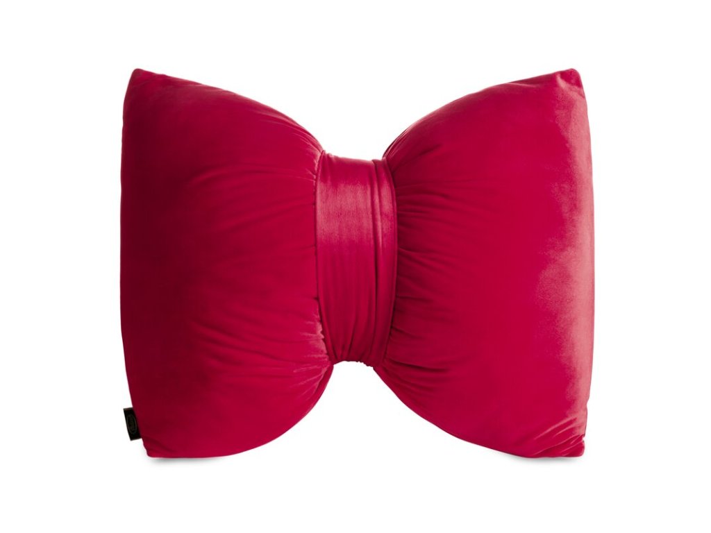 Dekoračný zamatový vankúš v tvare mašle - bordový