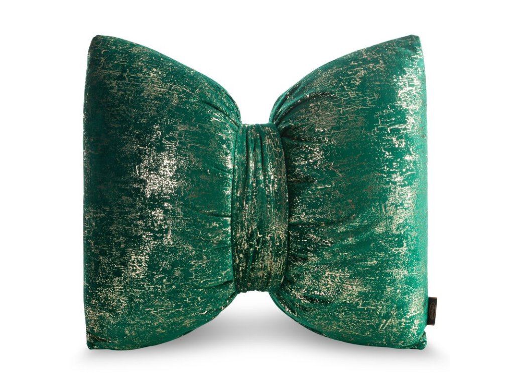 Dekoračný zamatový vankúš v tvare mašle - zelený s lesklým efektom