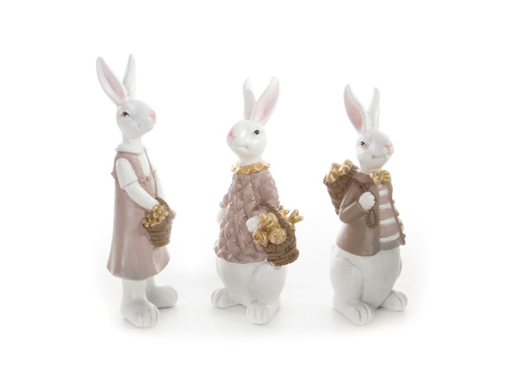 Dekoratívna figúrka zajaca s košíkom - béžová