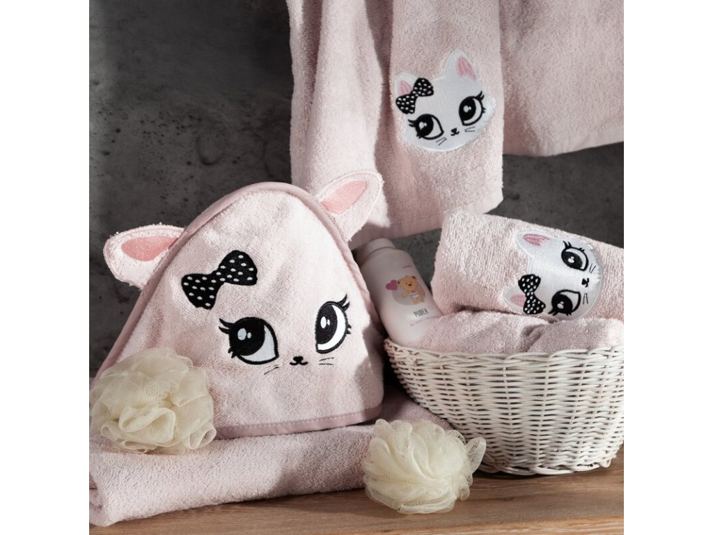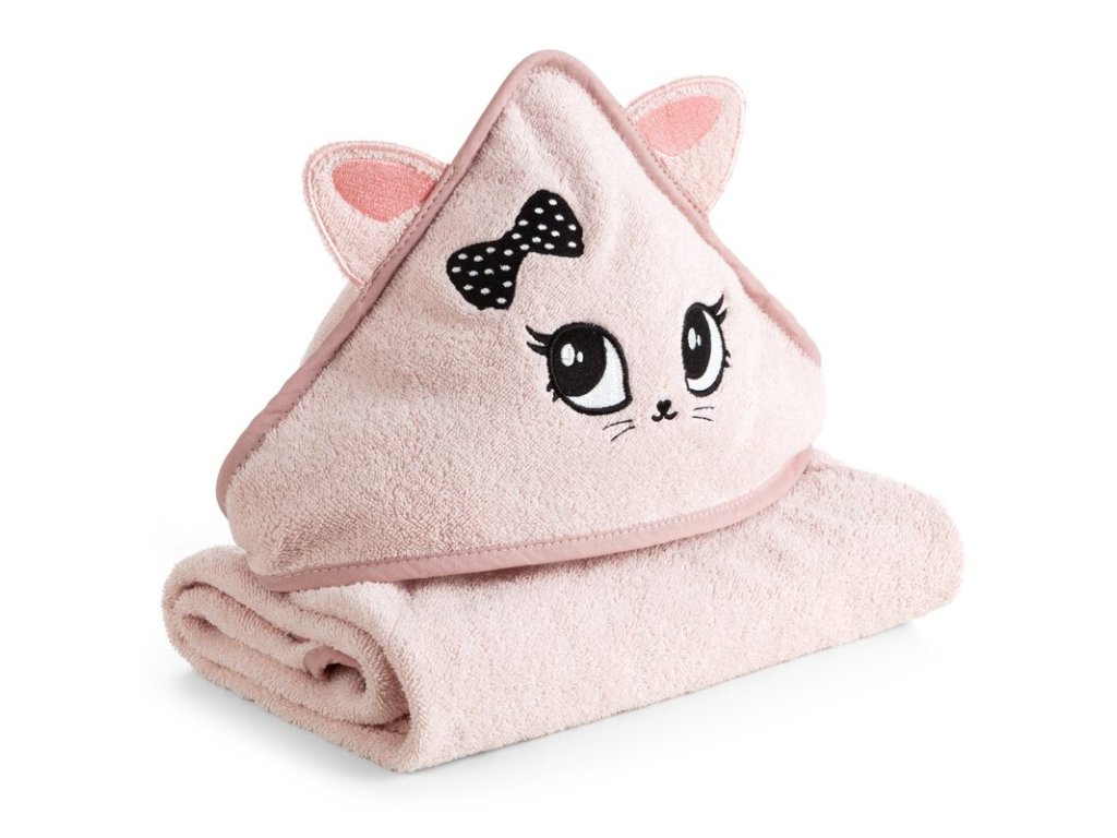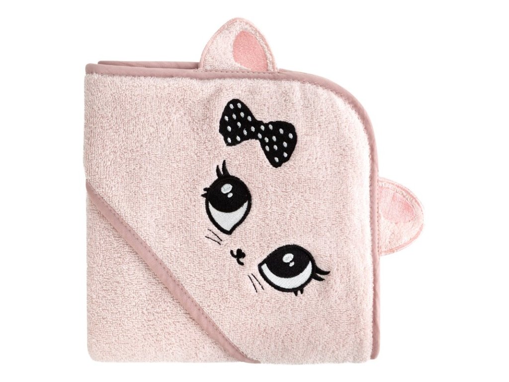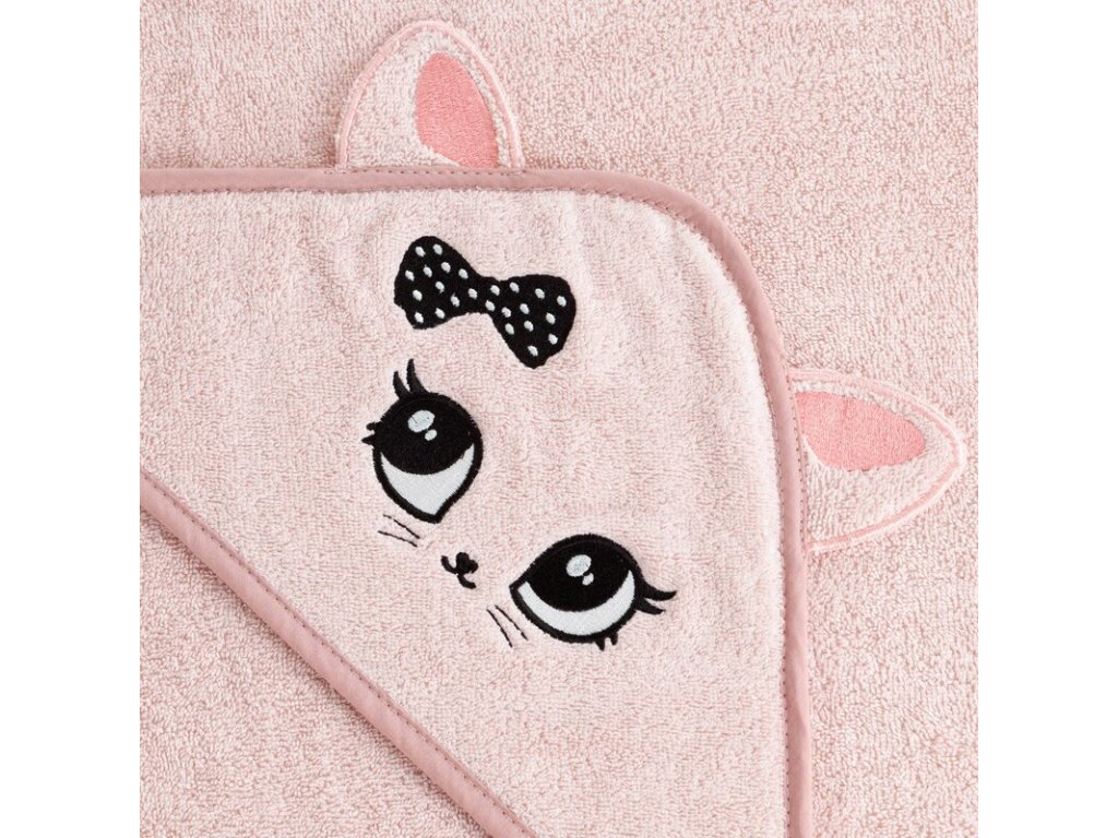 Detský uterák s kapucňou MAČIČKA 100 x 100 cm - ružový