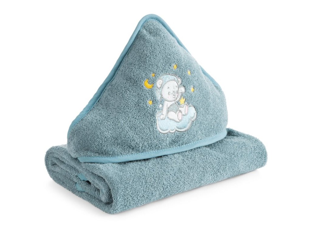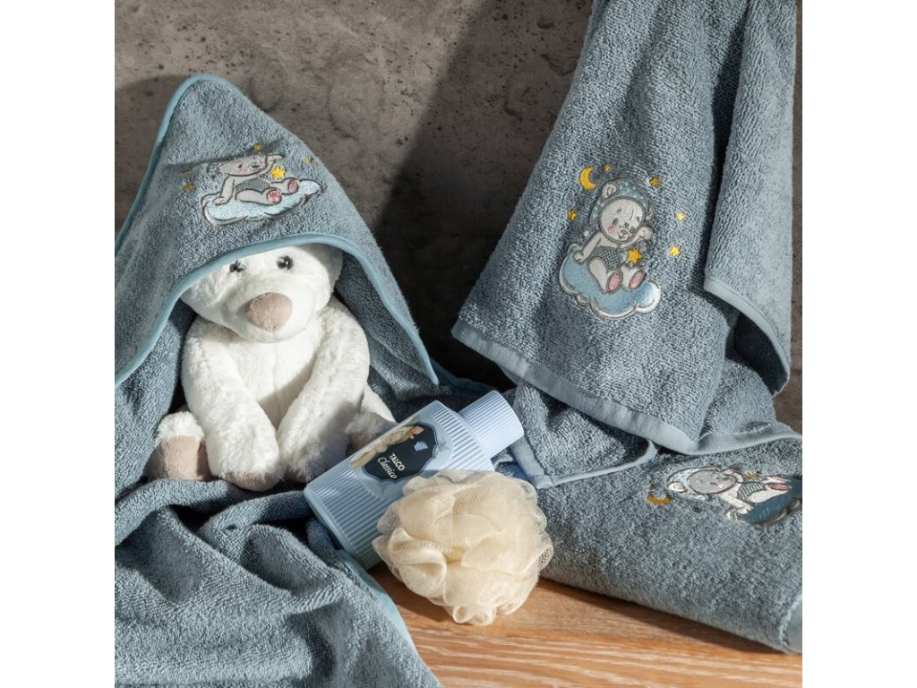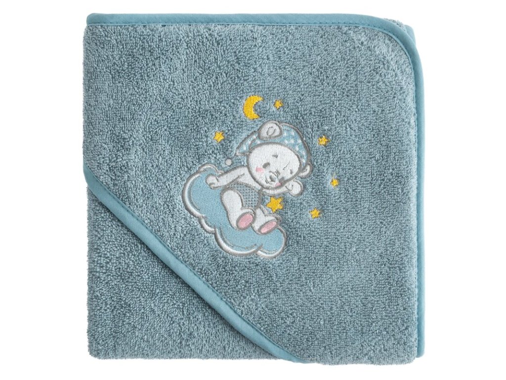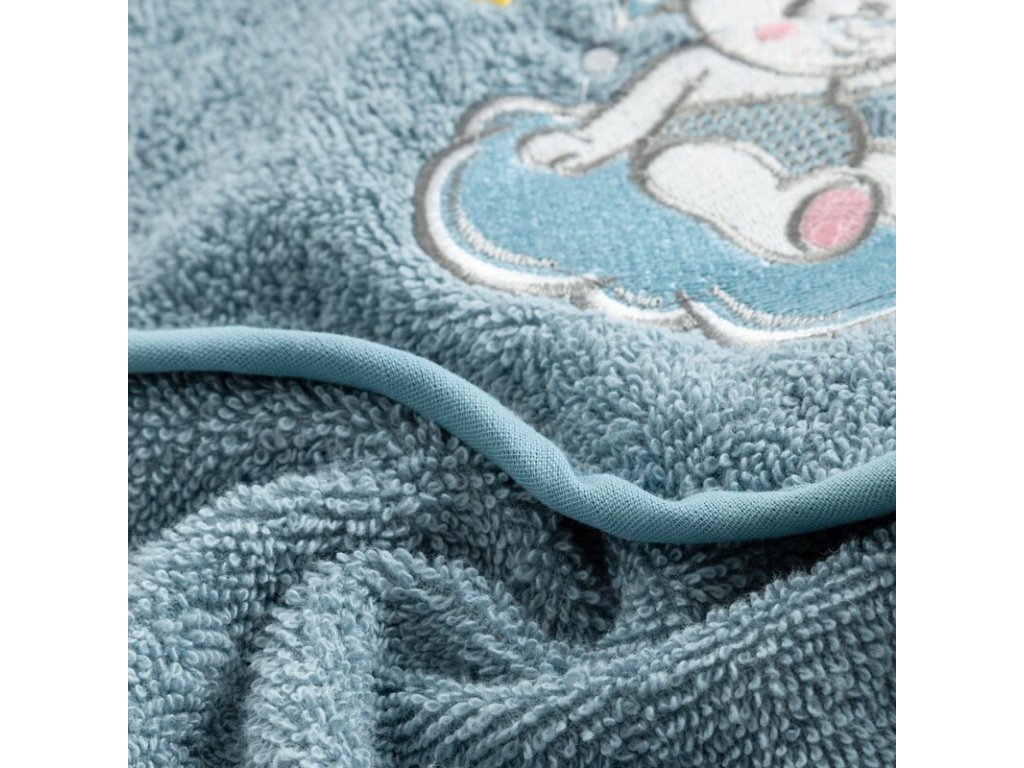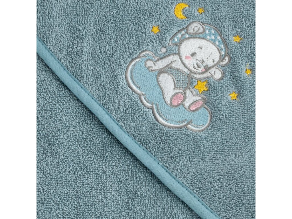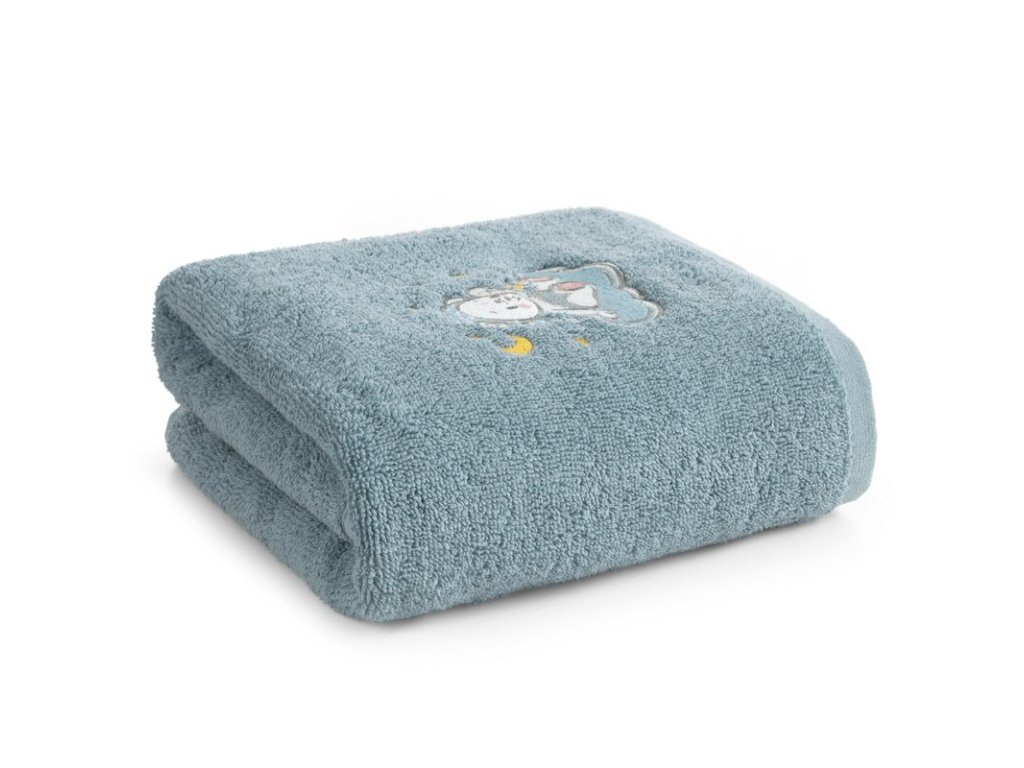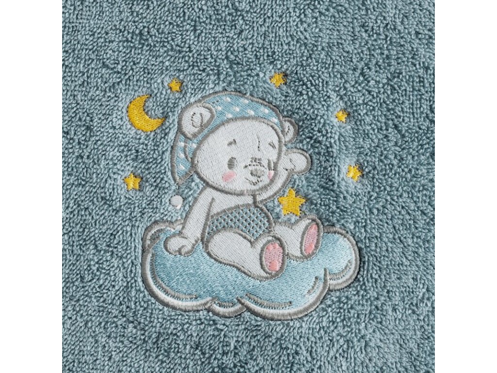 Roztomilá výšivka spiaceho medvedíka na obláčiku dodáva uteráku hravý detský vzhľad, ktorý si zamilujú deti aj rodičia.