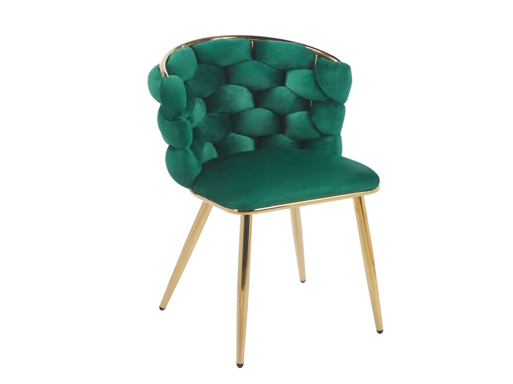 Dizajnová jedálenská stolička AURELIA Gold (tmavozelená) - zlatý rám