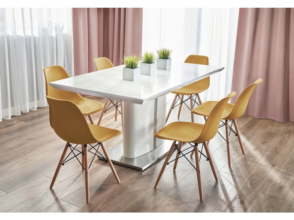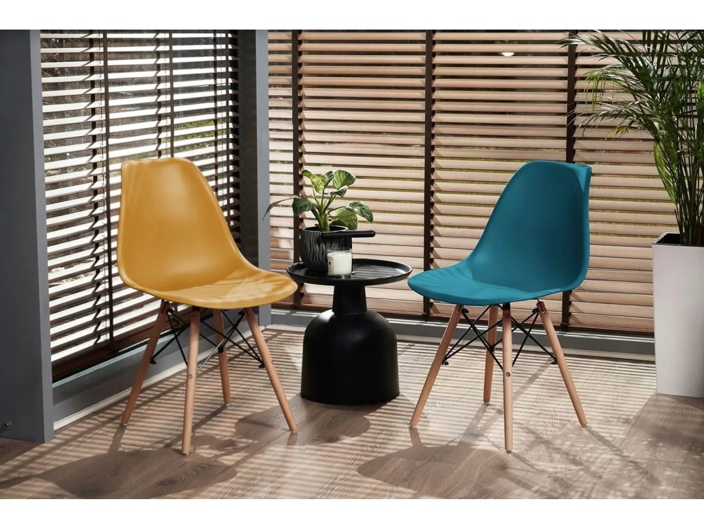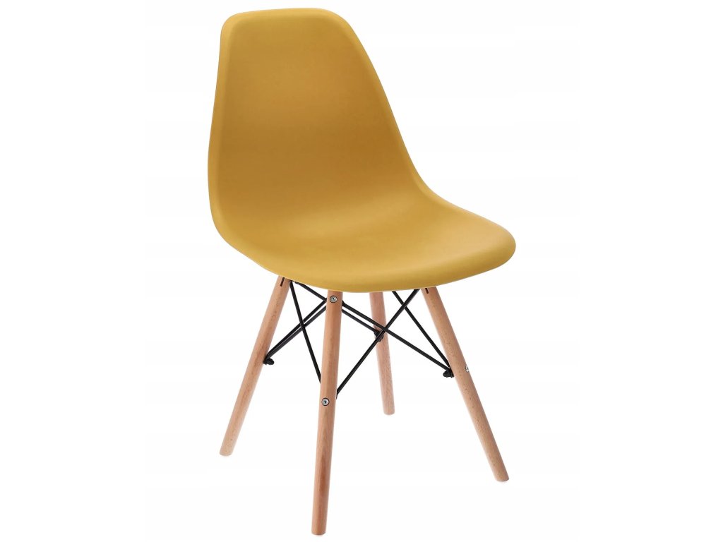 Dizajnová jedálenská stolička v škandinávskom štýle - horčicová