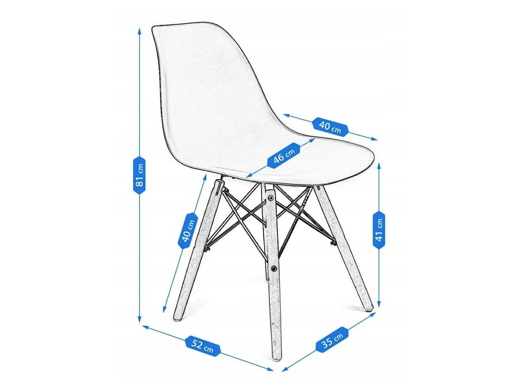 Ergonomicky tvarované sedadlo z odolného polypropylénu je navrhnuté pre pohodlné každodenné sedenie. Stabilitu zabezpečujú nohy z masívneho bukového dreva, ktoré pôsobia prirodzene a zároveň sú pevné. Charakteristickým detailom sú kontrastné spojky, ktoré spevňujú konštrukciu a zároveň slúžia ako dizajnový akcent.