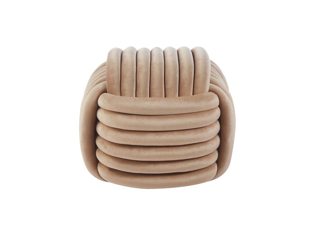 Dizajnová jednomiestna zamatová čalúnená taburetka v tvare klbka - cappuccino