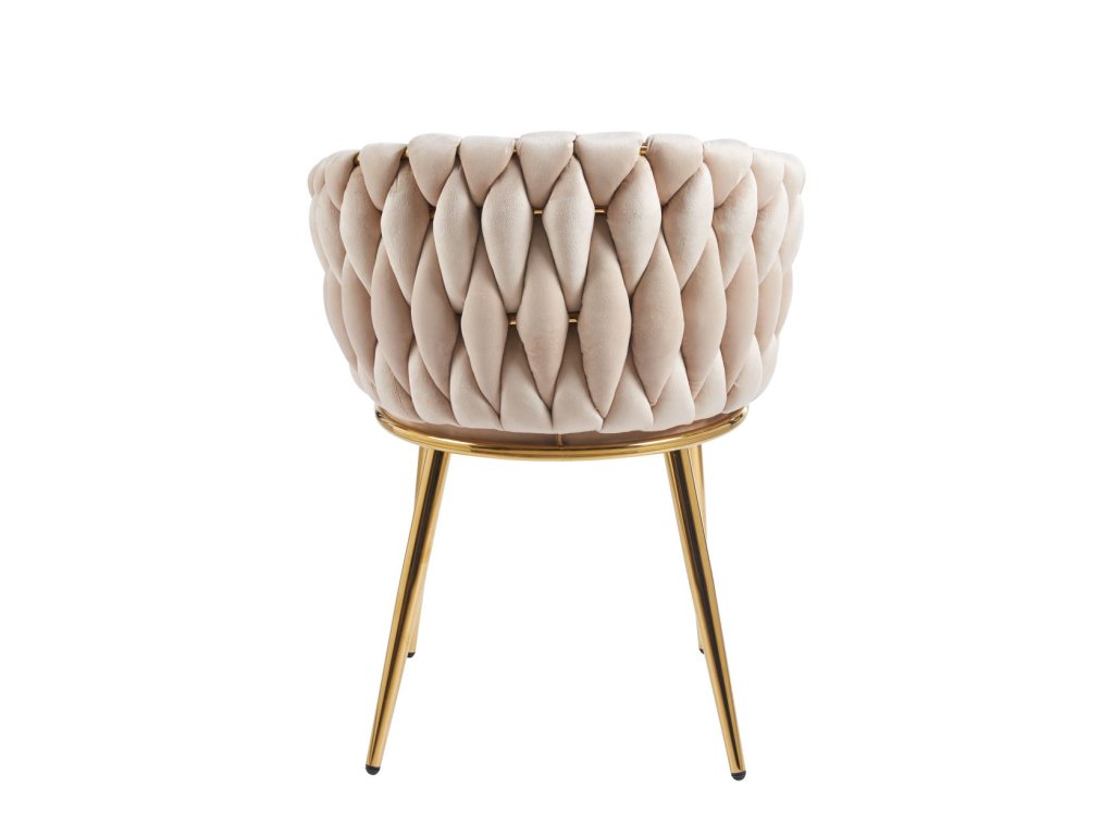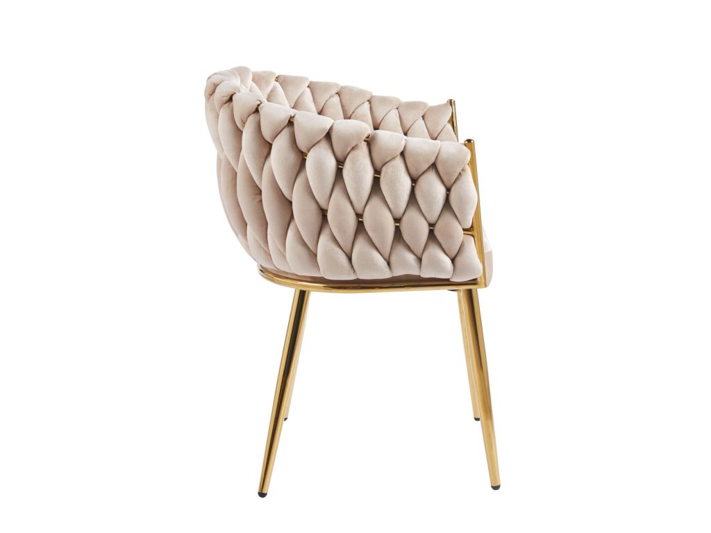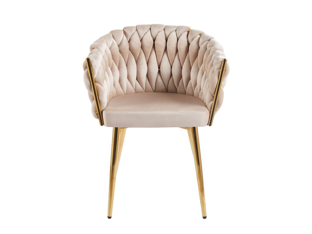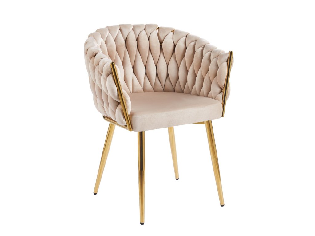 Táto luxusná zamatová prepletaná stolička je skutočným dizajnovým skvostom, ktorý okamžite upúta pozornosť a stane sa dominantným prvkom vášho interiéru. Vďaka originálnemu prepletanému operadlu, jemnému velvetu a elegantným zlatým nohám stolička dokonale zapadne do moderných aj glamour interiérov.