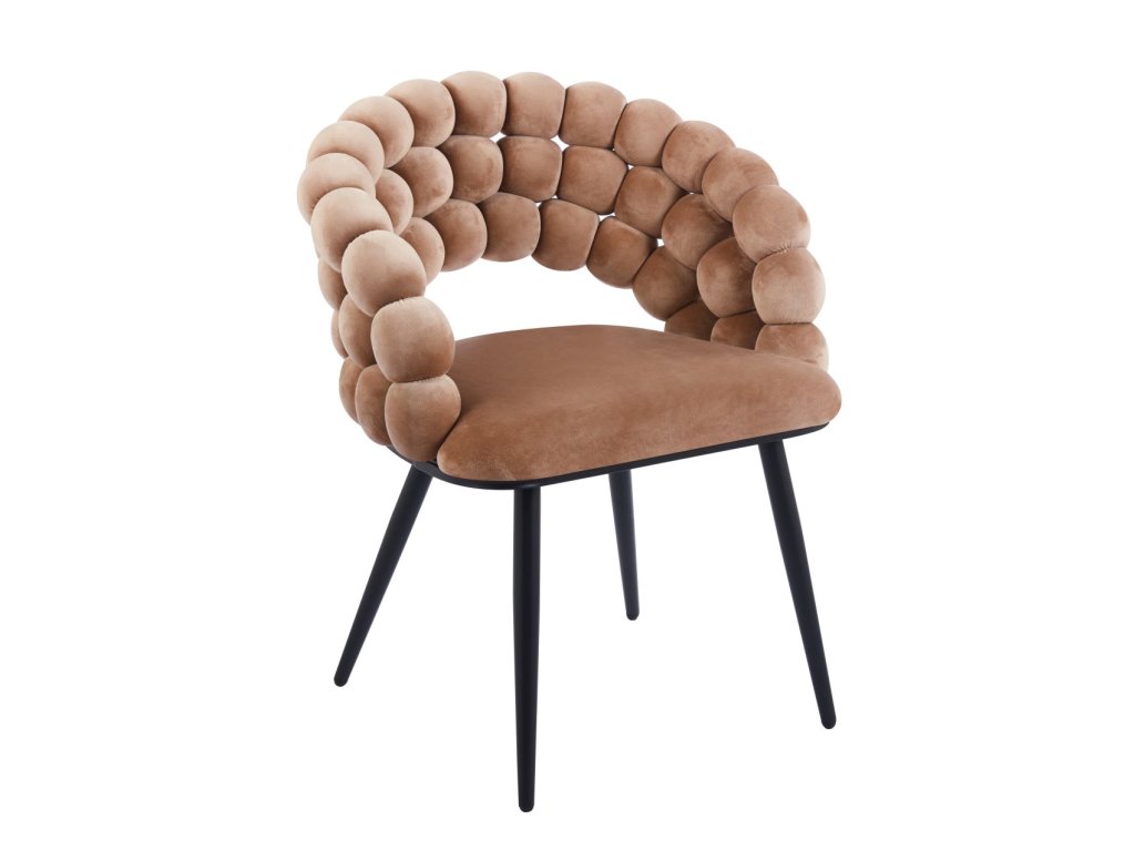 Dizajnová zamatová stolička RIVIERA (cappuccino) - čierny rám