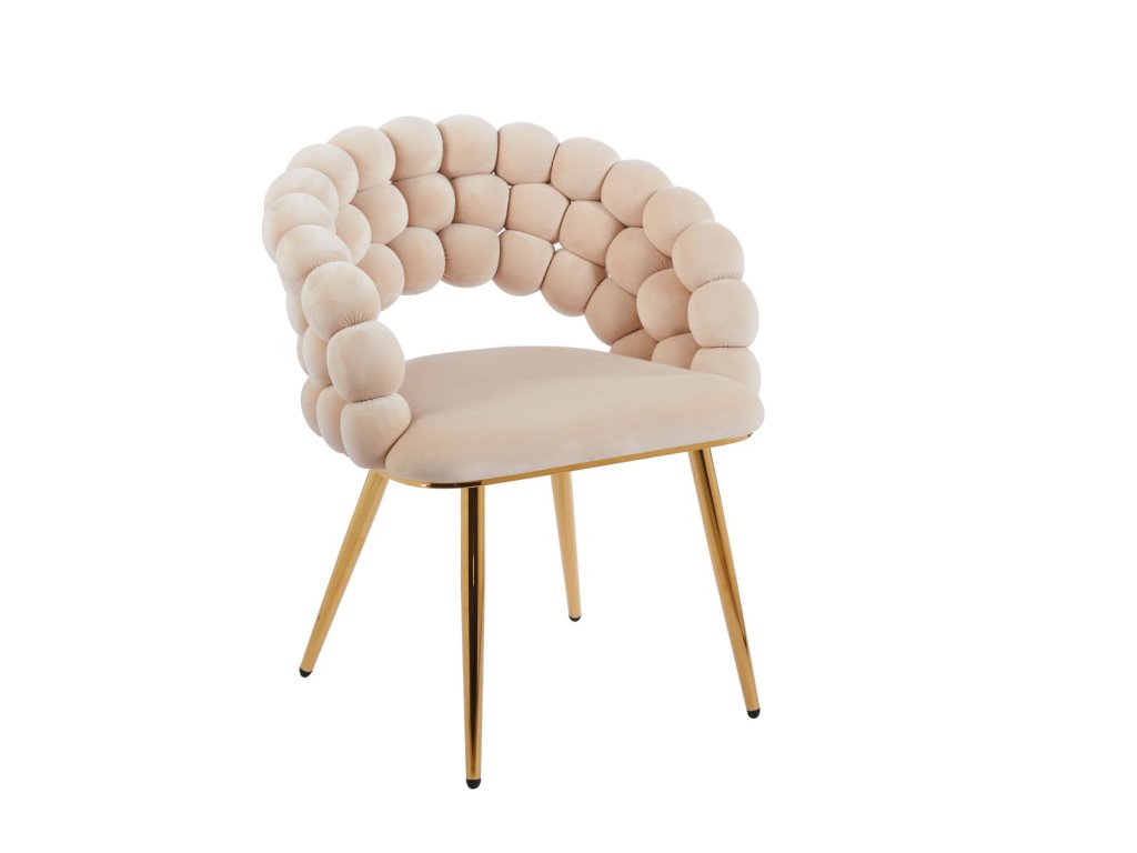 Dizajnová zamatová stolička RIVIERA LUX (béžová) - zlatý rám