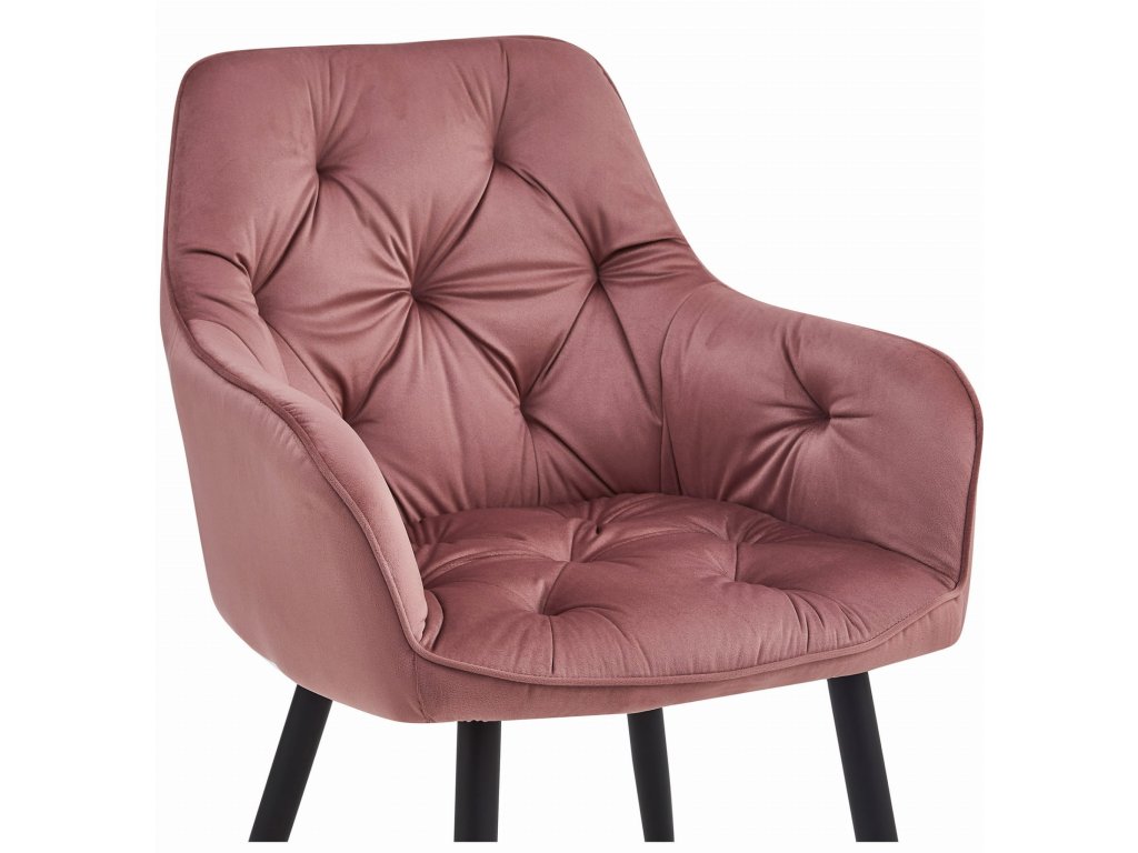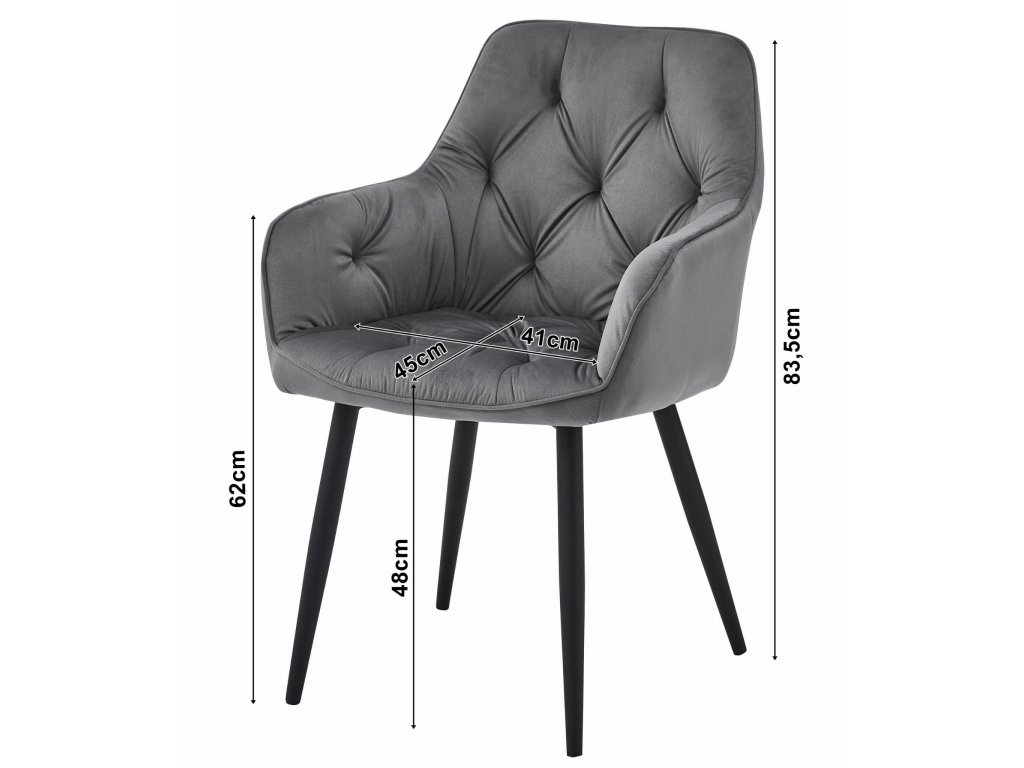 Pevná, zamatová stolička je vybavená mäkkým sedákom a vysokým operadlom s ozdobným prešívaním.