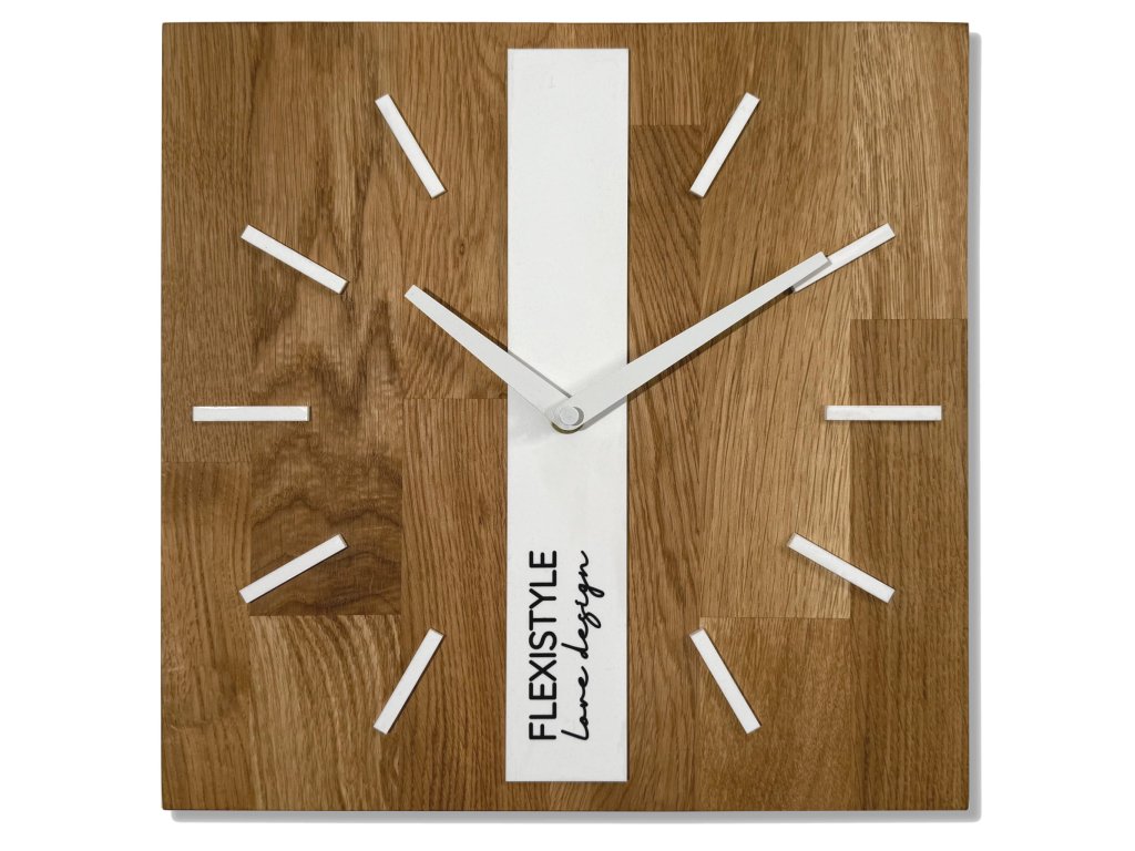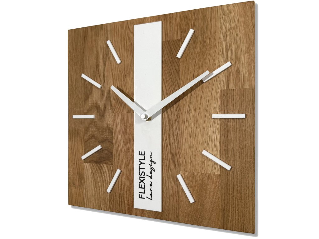 Elegantné drevené hodiny DUB klasik SQ 30cm - biele