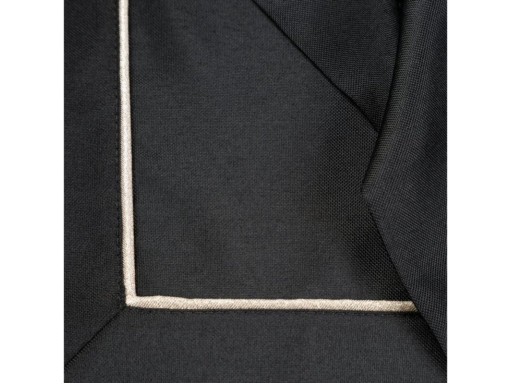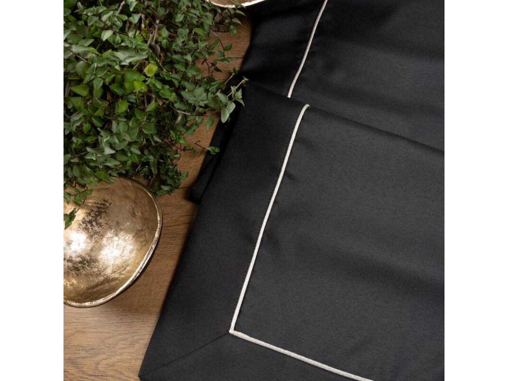 Elegantná podložka na stôl v čiernej farbe so strieborným lemovaním je praktické a mimoriadne dekoratívne prestieranie.