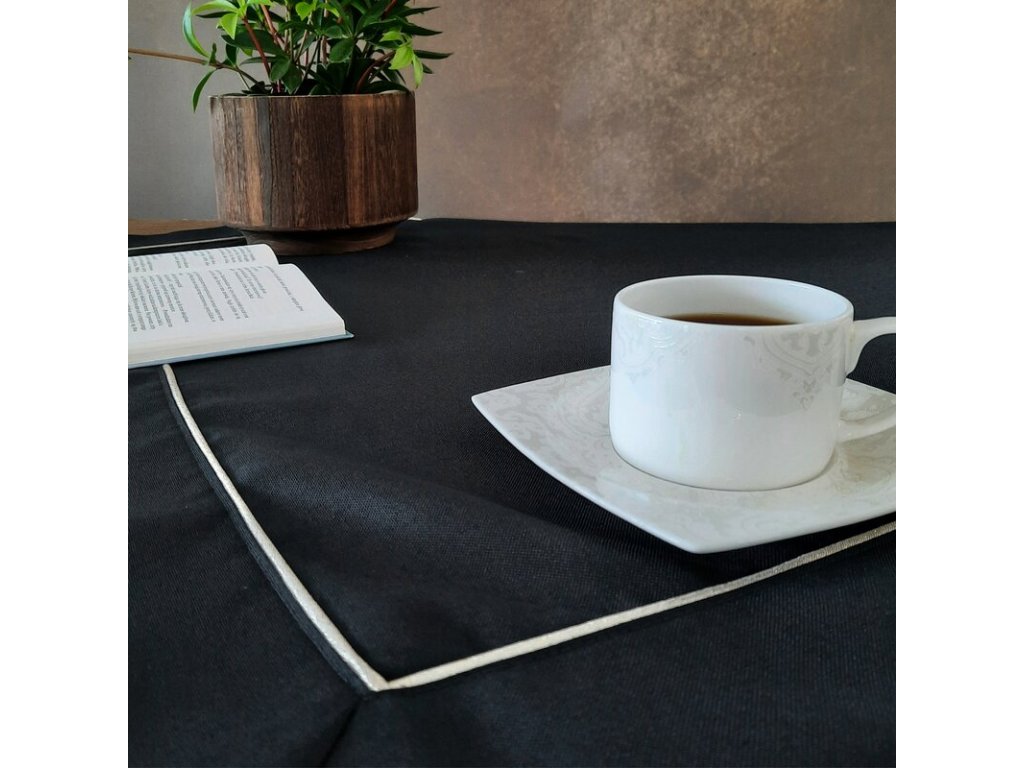 Elegantný čierny obrus DORITA so striebornou lemovkou je investícia do vašej spokojnosti, pohodlia a štýlu života.