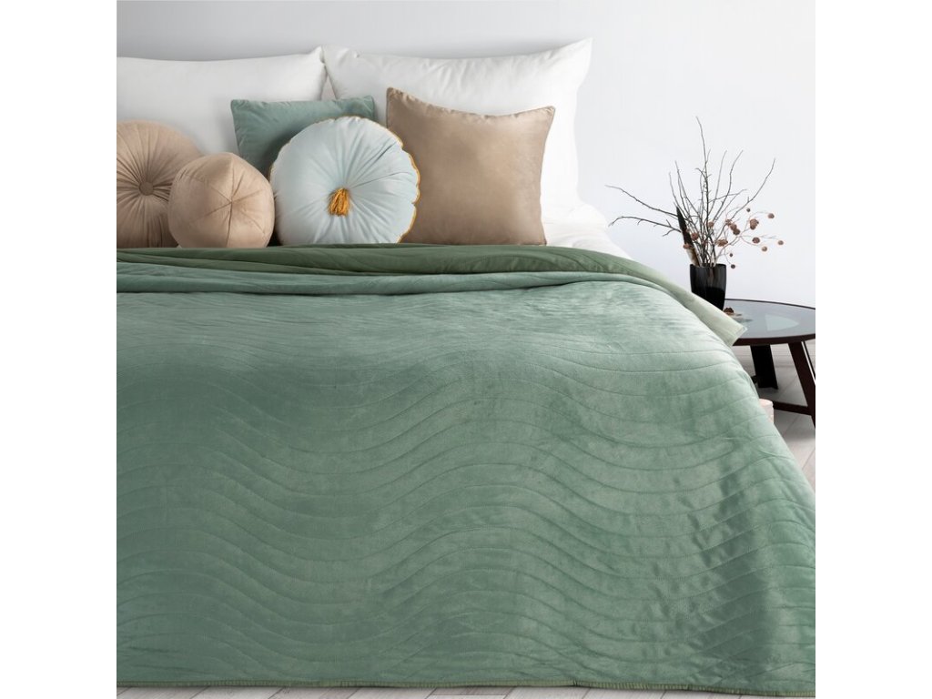 Elegantný zamatový prehoz na posteľ LUIZ10 zelený