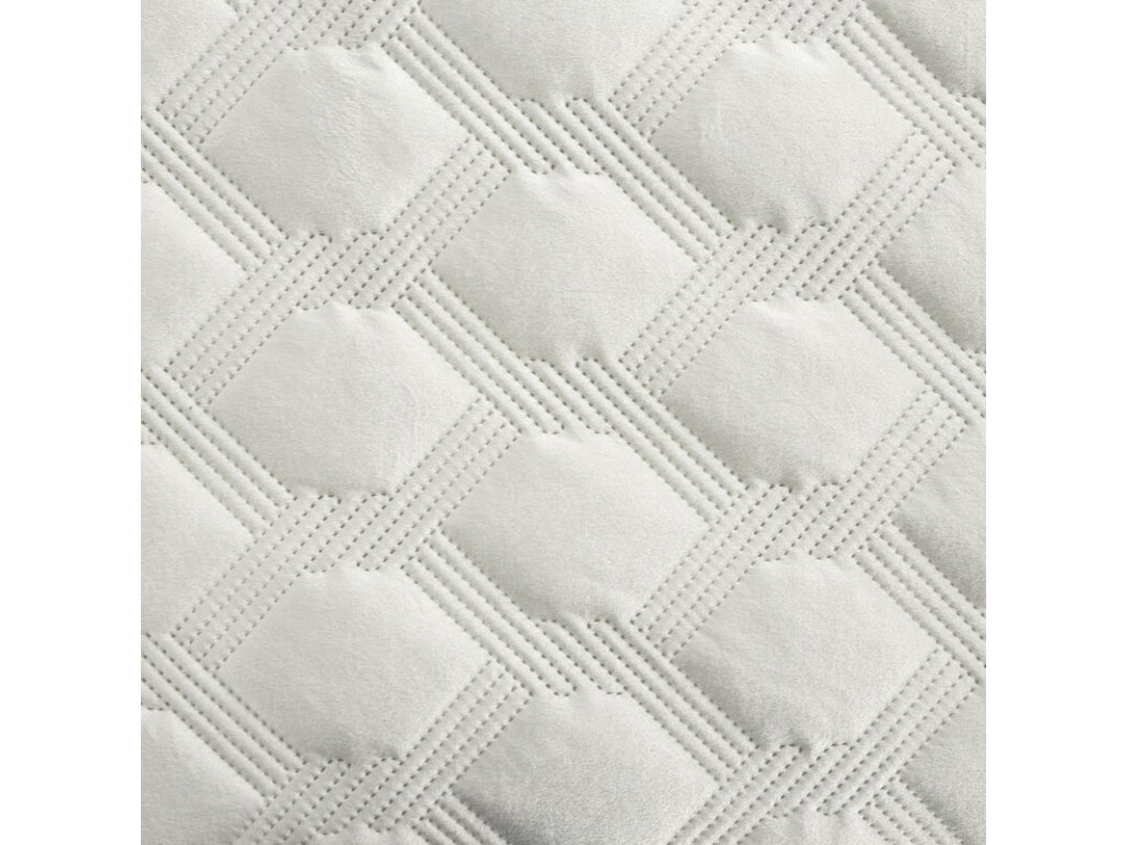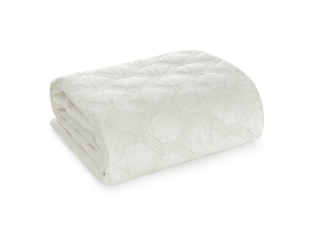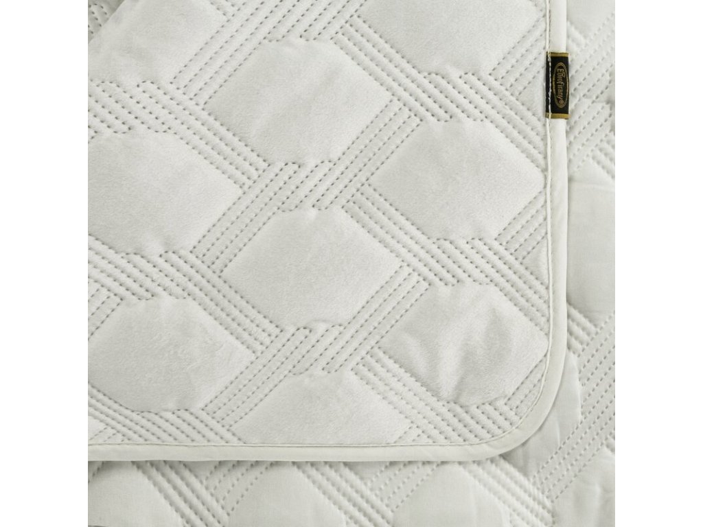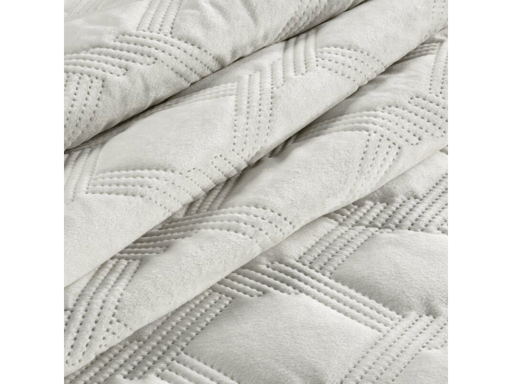 Tento štýlový prehoz je vyrobený z mäkkej velúrovej tkaniny s jemným leskom, ktorý dodáva interiéru luxusný a útulný vzhľad. Moderné prešívanie technológiou hot press vytvára elegantný geometrický vzor bez použitia klasických švov, vďaka čomu prehoz pôsobí mimoriadne čisto, uhladene a esteticky.