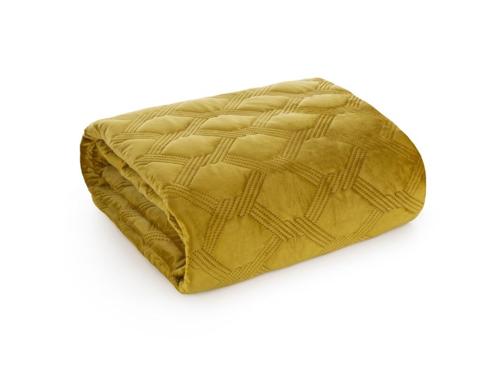 Elegantný zamatový prehoz na posteľ SOFIA 5 medovozlatý