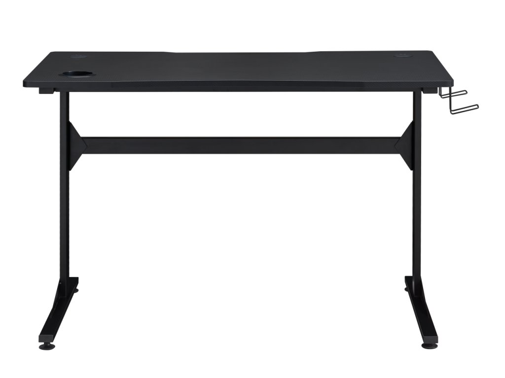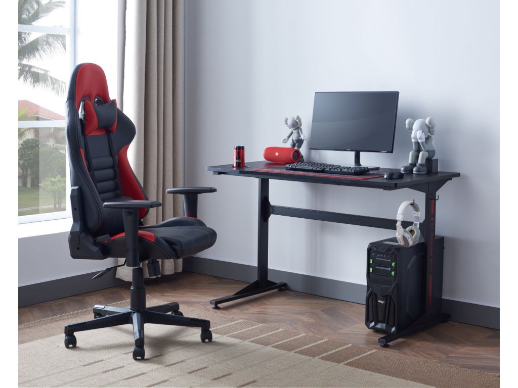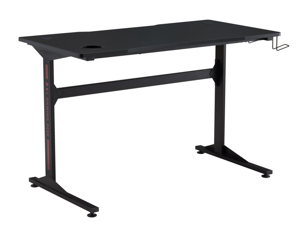 Herný písací stôl s držiakom na nápoje a háčikmi na slúchadlá - čierny s červenými prvkami