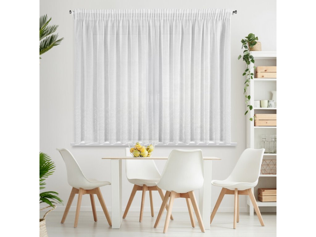 Hotová záclona KLOE vyrobená z etamínu je jedinečným dekoratívnym prvkom, ktorý dodáva každej miestnosti eleganciu a sofistikovanosť.