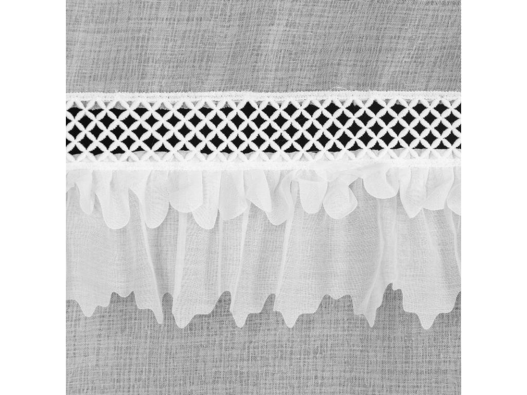 Záclona sa krásne vlní, pôsobí elegantne a vďaka dekoratívnemu spodnému okraju dodáva oknu jemný detail, ktorý zaujme na prvý pohľad.