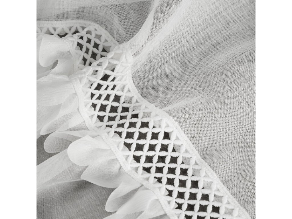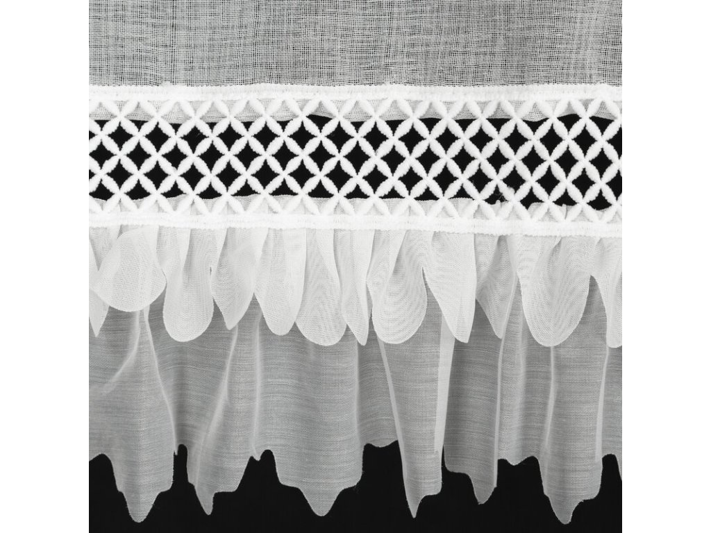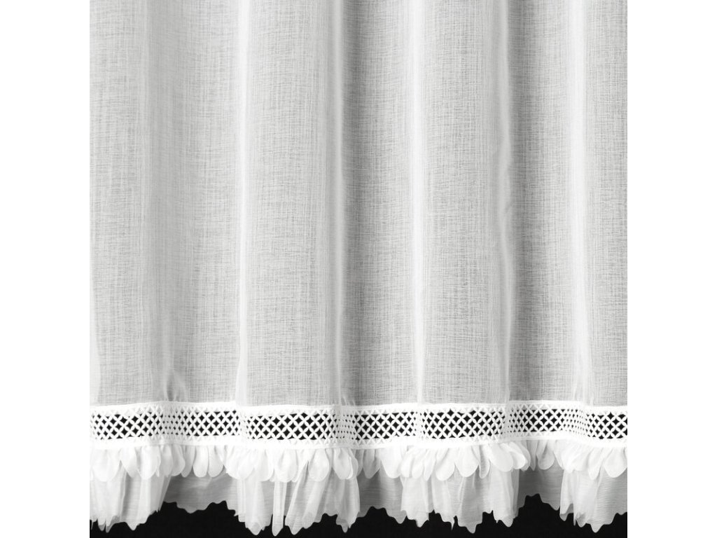 Záclona sa krásne vlní, pôsobí elegantne a vďaka dekoratívnemu spodnému okraju dodáva oknu jemný detail, ktorý zaujme na prvý pohľad.