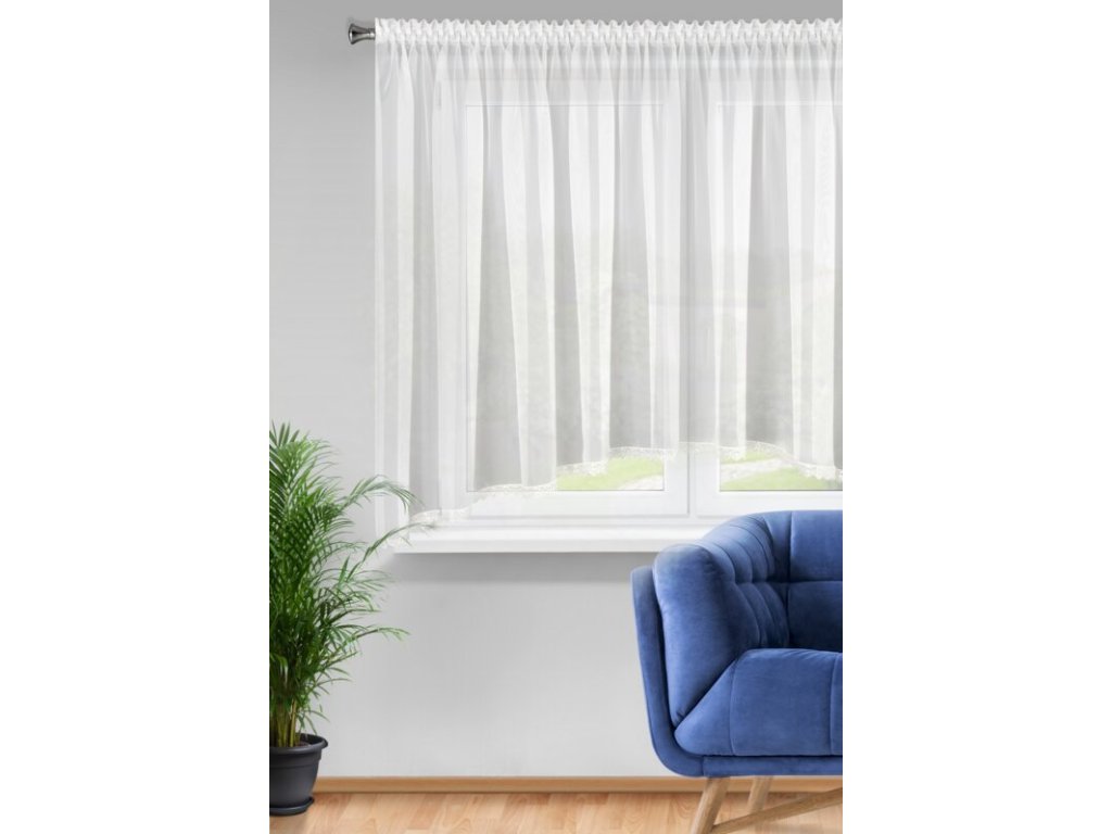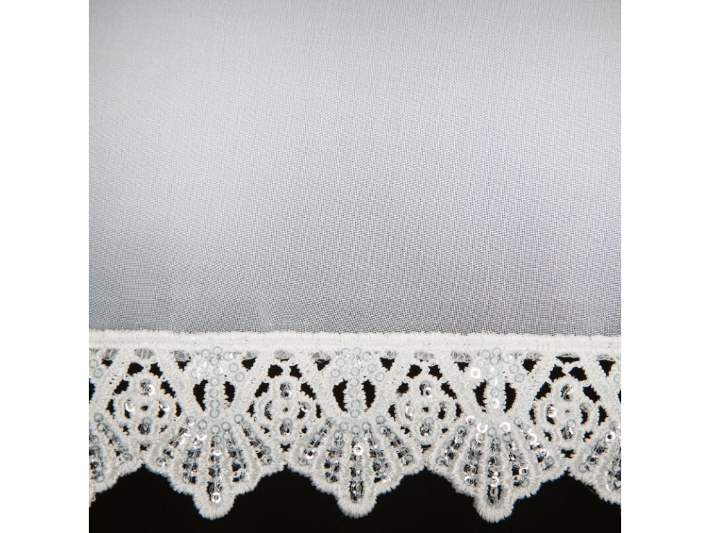 Vneste do svojho domova jemnosť, svetlo a štýl s touto hotovou záclonou zdobenou gipiérovým lemom s flitrami. Vyrobená z kvalitného ľahkého polyesterového voálu, ktorý krásne prepúšťa prirodzené svetlo, rozjasní interiér a vytvorí v ňom atmosféru čistoty a harmónie.