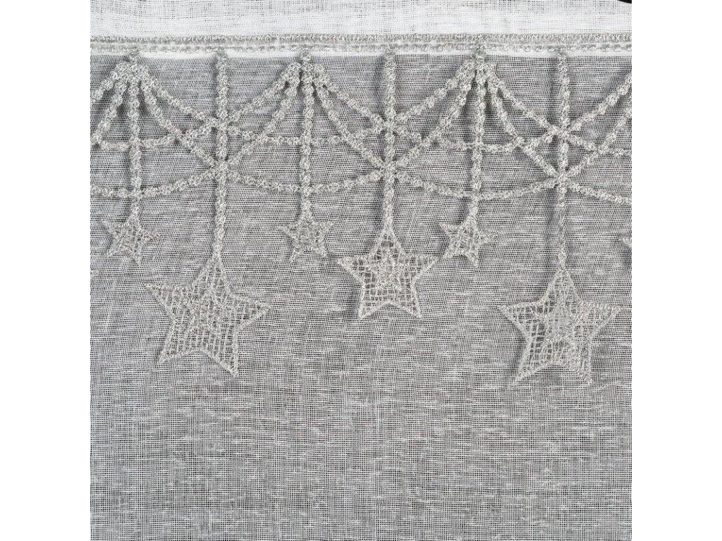 Doprajte svojmu domovu vianočný šarm a zimnú eleganciu s touto hotovou bielou záclonou so strieborným lemovaním. Vyrobená je z jemného, priesvitného etamínu, ktorý nádherne rozptyľuje svetlo a vytvára útulnú, žiarivú atmosféru počas celého sviatočného obdobia.