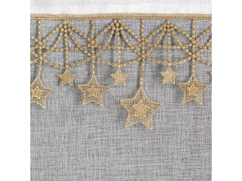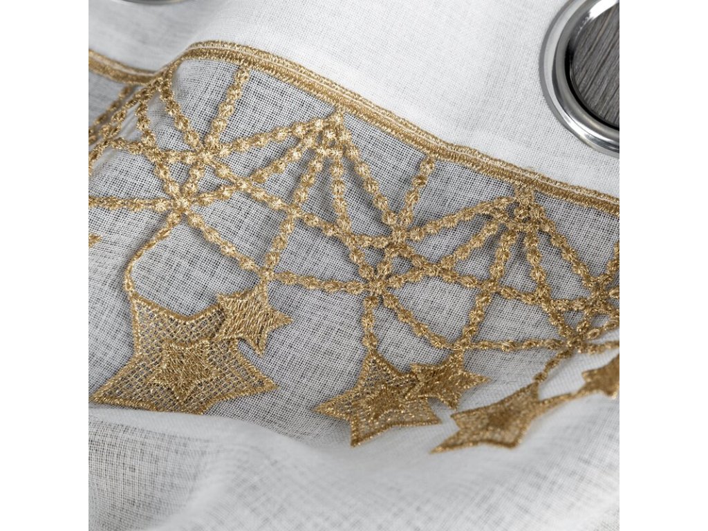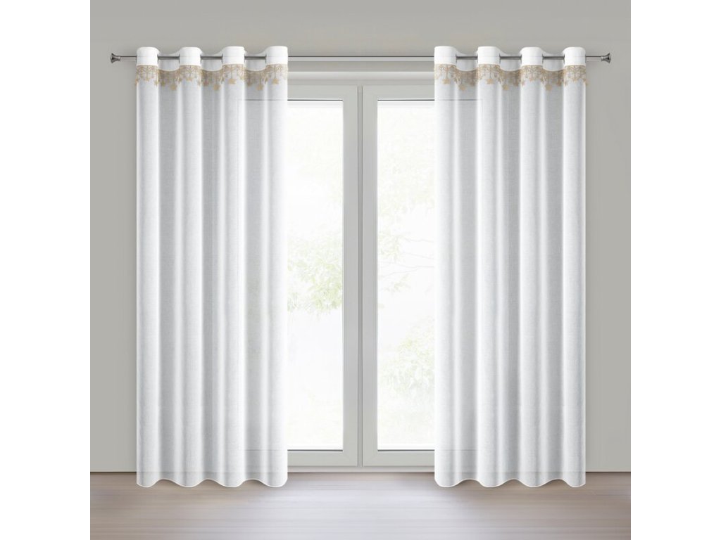 Vneste do svojho domova vianočnú atmosféru, teplo a eleganciu s touto hotovou bielou záclonou so zlatým lemovaním. Vyrobená je z kvalitného, ľahkého etamínu, ktorý jemne prepúšťa svetlo, vďaka čomu interiér pôsobí sviežo, priestranne a útulne.