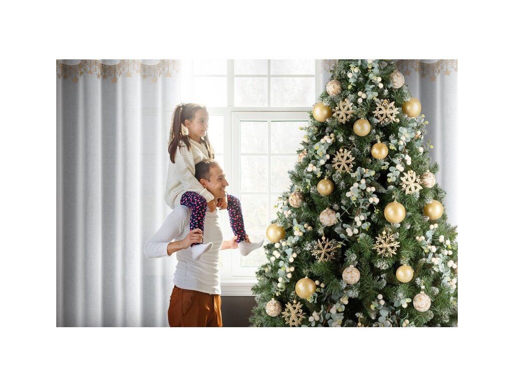 Hornú časť zdobí zlaté vianočné lemovanie s jemnou výšivkou, ktoré pôsobí elegantne a luxusne. Zlaté akcenty sa krásne lesknú na dennom aj umelom svetle a dodávajú priestoru slávnostný a exkluzívny charakter.
